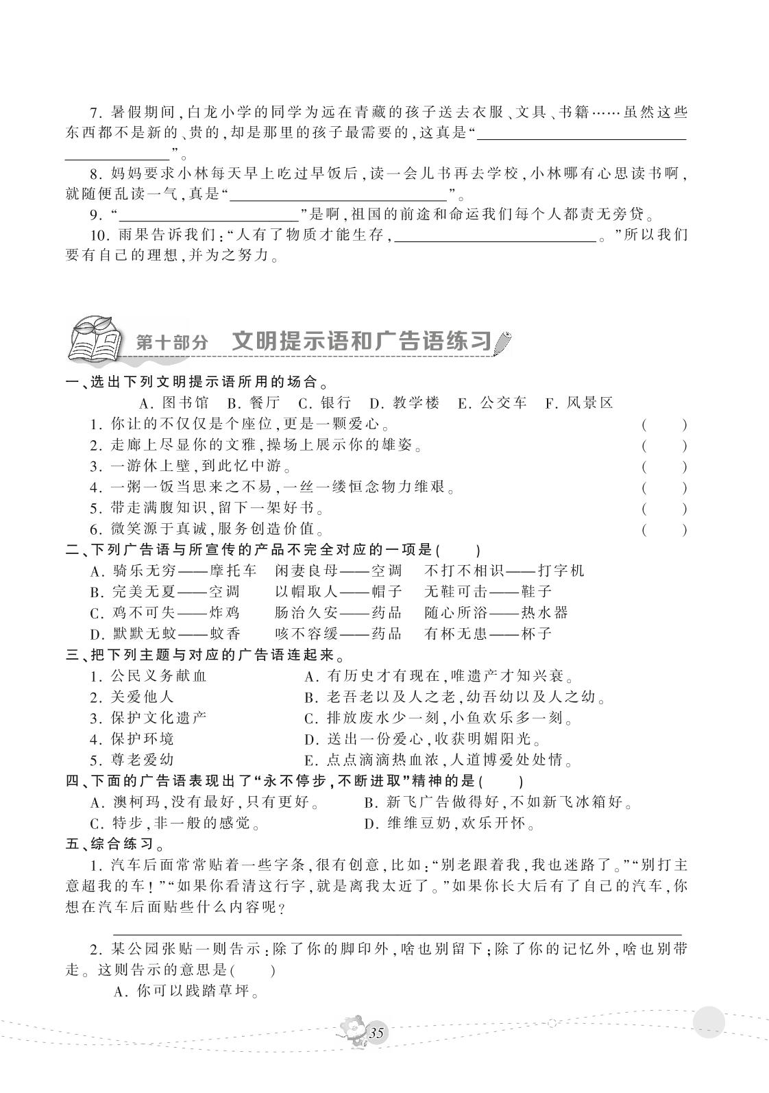 【小学语文知识专项练习】第十部分 文明提示语和广告语练习