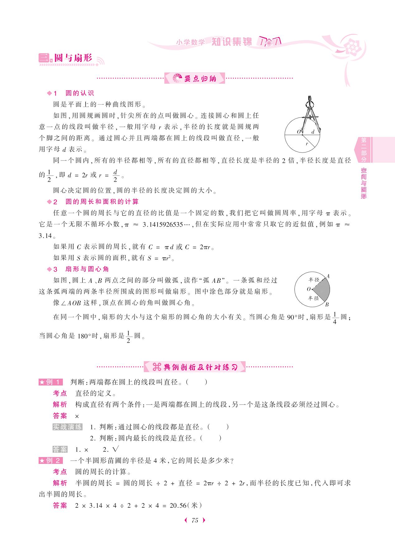 【小学数学知识讲与练·空间与图形】第二章 平面图形 三、圆与扇形