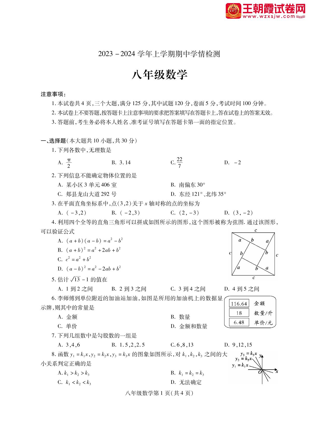 八年级数学北师版上册期中卷
