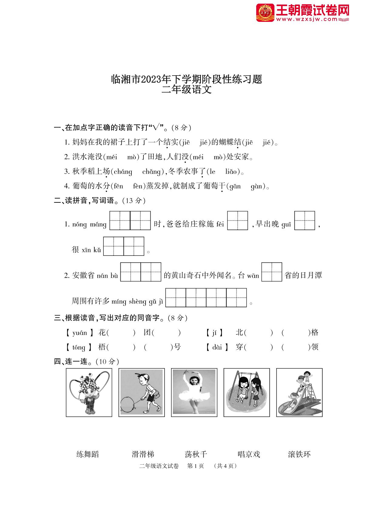 湖南省岳阳市临湘市2023-2024学年第一学期期中阶段性练习题二年级语文(人教版)
