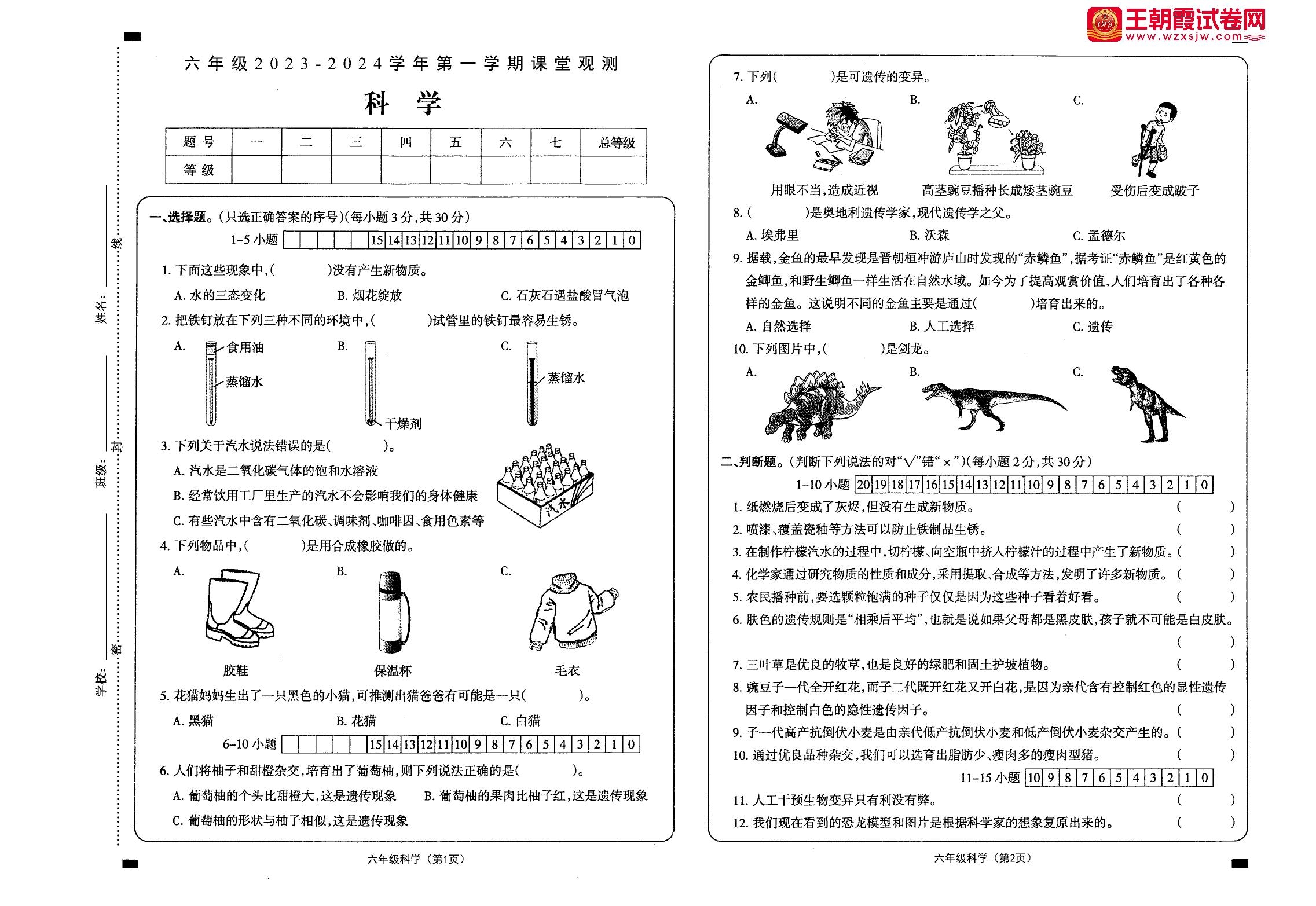 山西省大同市2023-2024学年第一学期期中课堂观测六年级科学(冀人版)