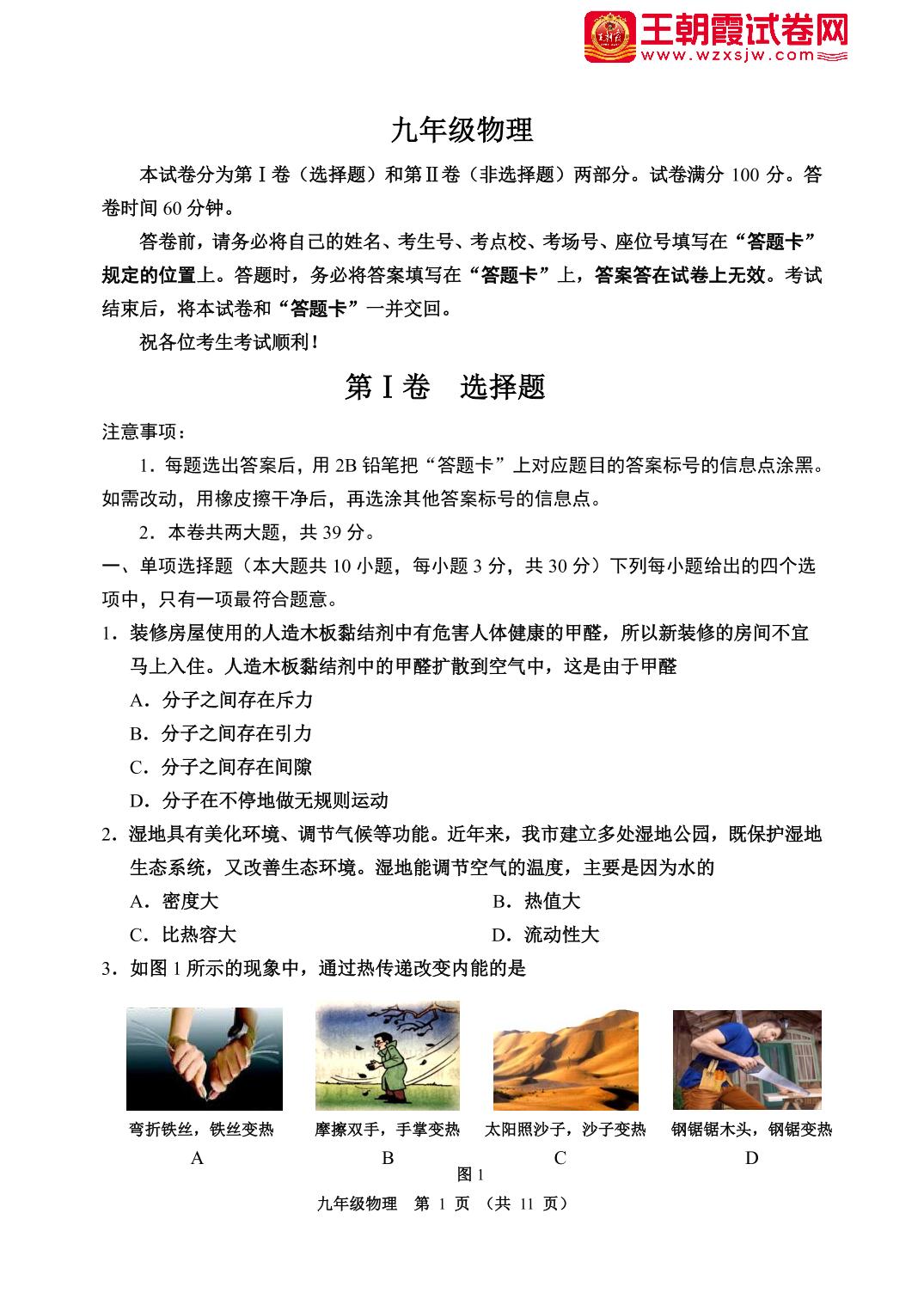 九年级物理人教版上册期中卷
