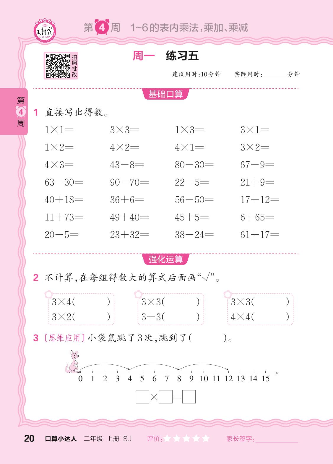 2024秋上册二年级数学苏教版 口算计算专练 第4周