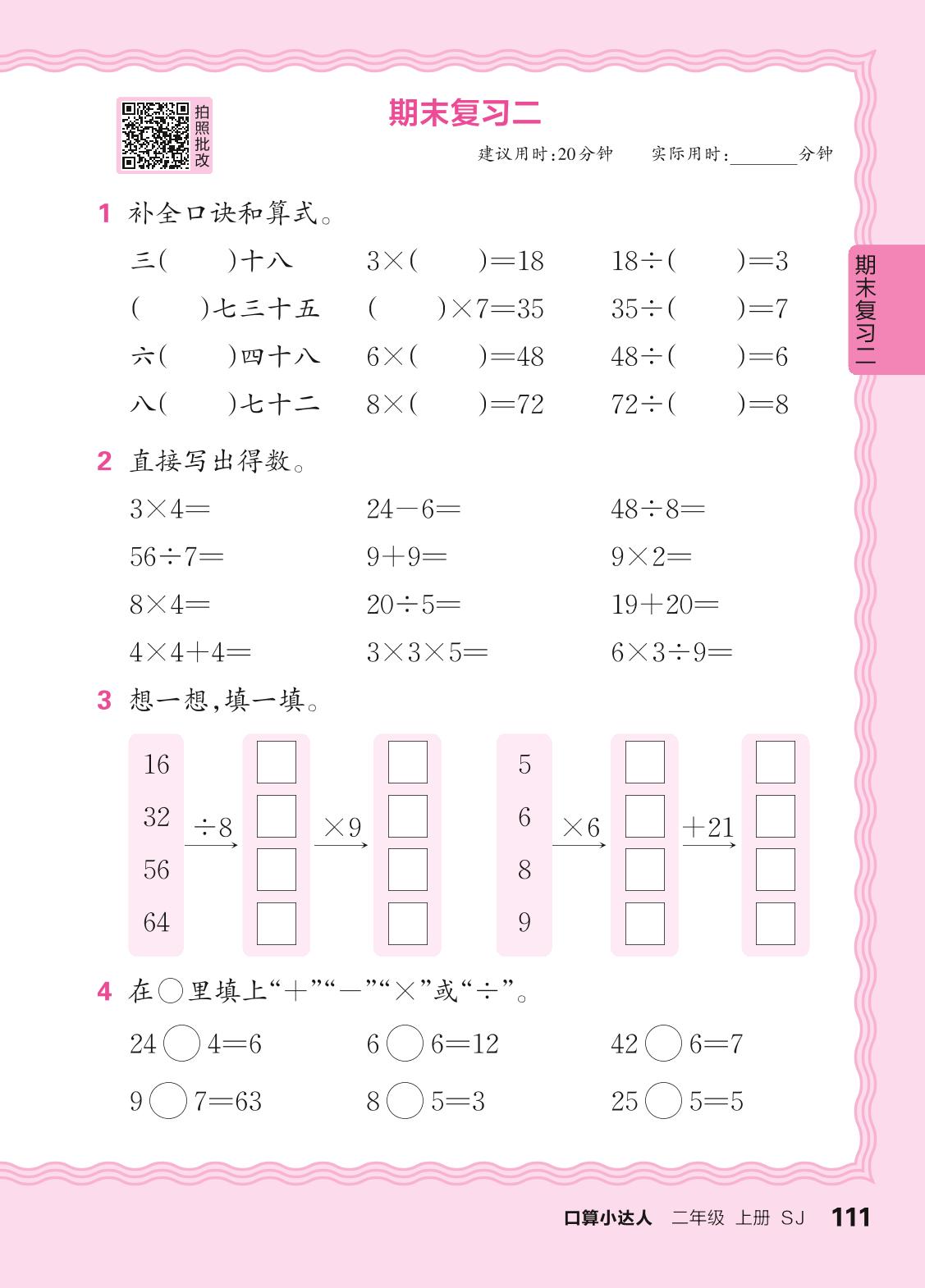 二年级数学苏教版上册专项卷