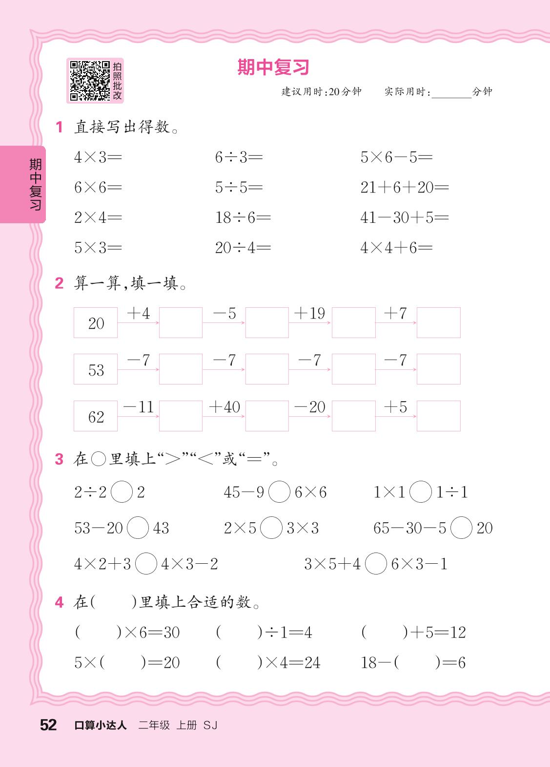 2024秋上册二年级数学苏教版 期中复习(计算专练)