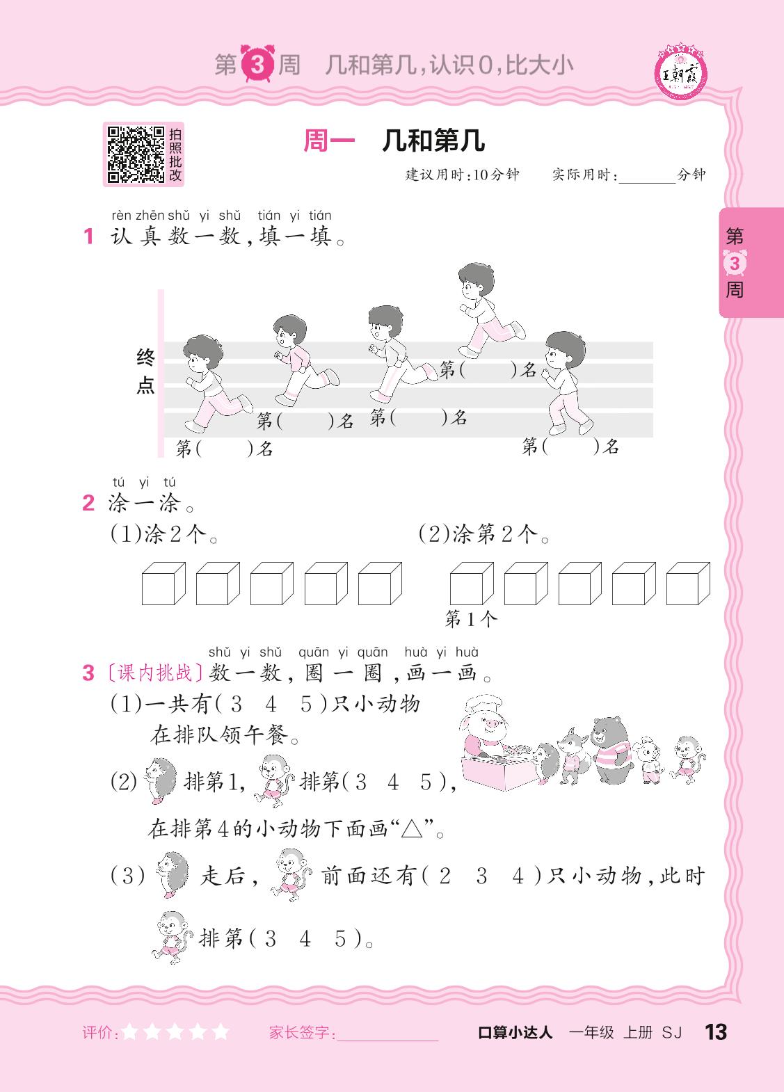 2024秋上册一年级数学苏教版 口算计算专练 第3周