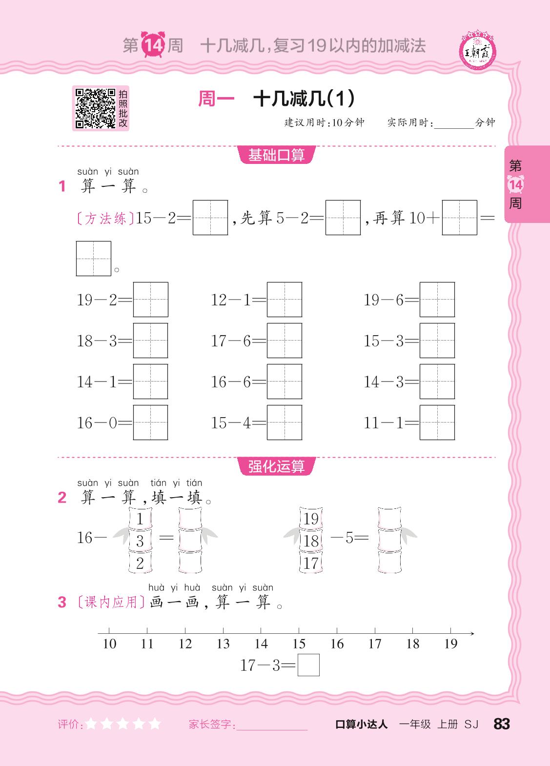 2024秋上册一年级数学苏教版 口算计算专练 第14周
