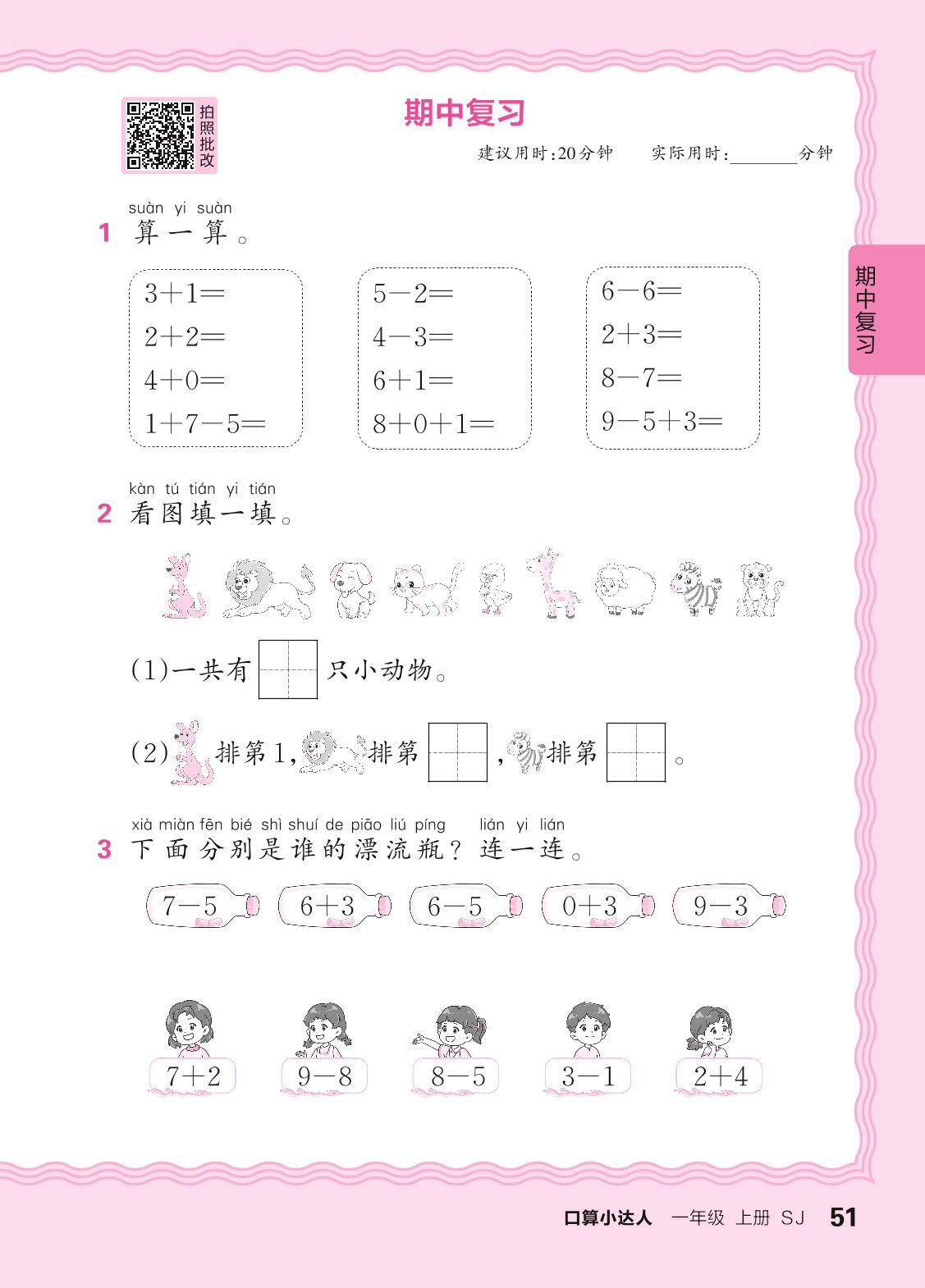 2024秋上册一年级数学苏教版 期中复习(计算专练)