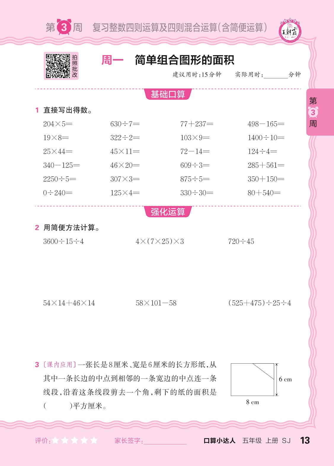 2024秋上册五年级数学苏教版 口算计算专练 第3周