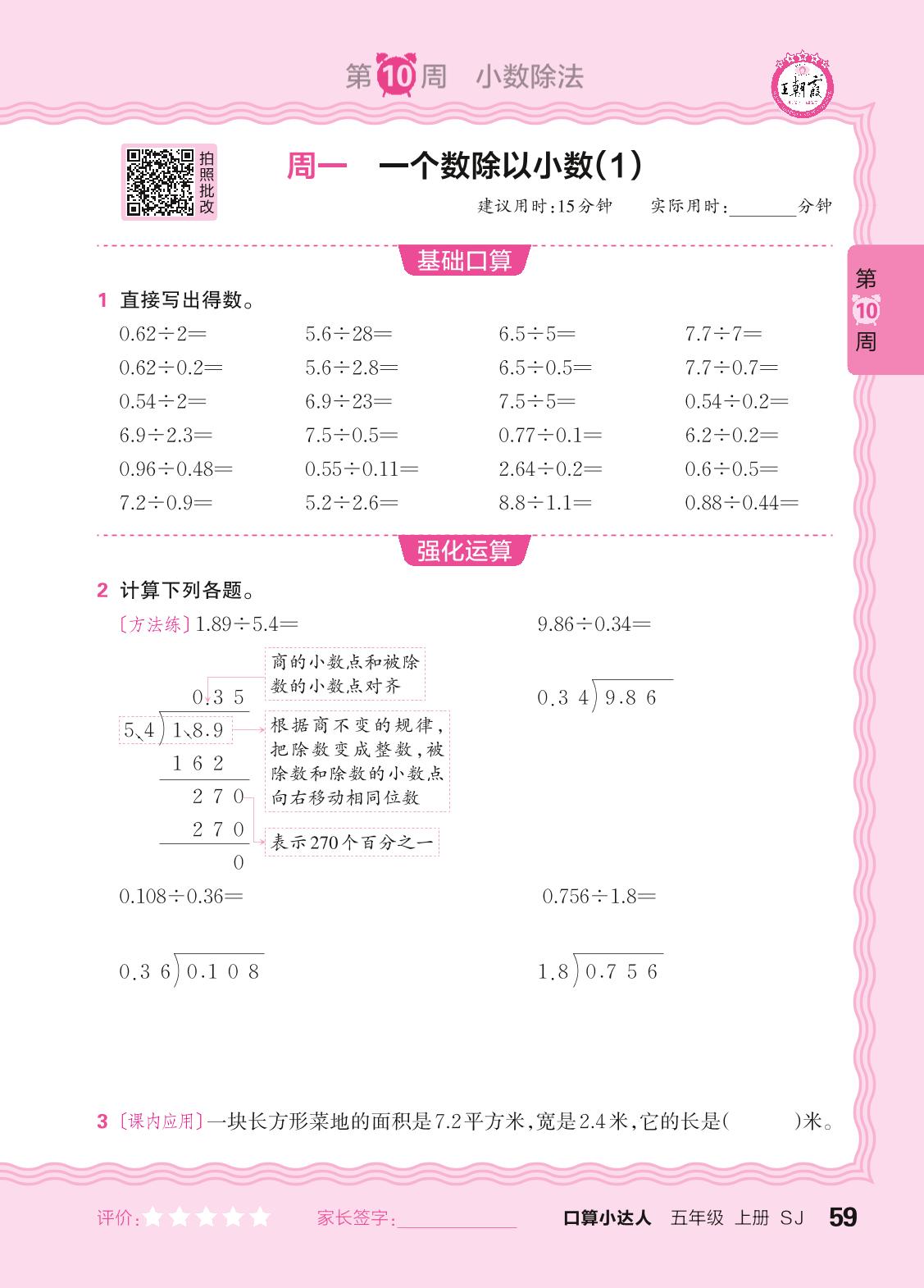 2024秋上册五年级数学苏教版 口算计算专练 第10周
