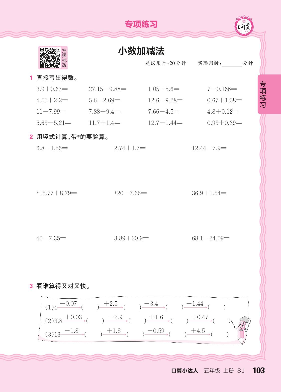 2024秋上册五年级数学苏教版 口算计算专项练习