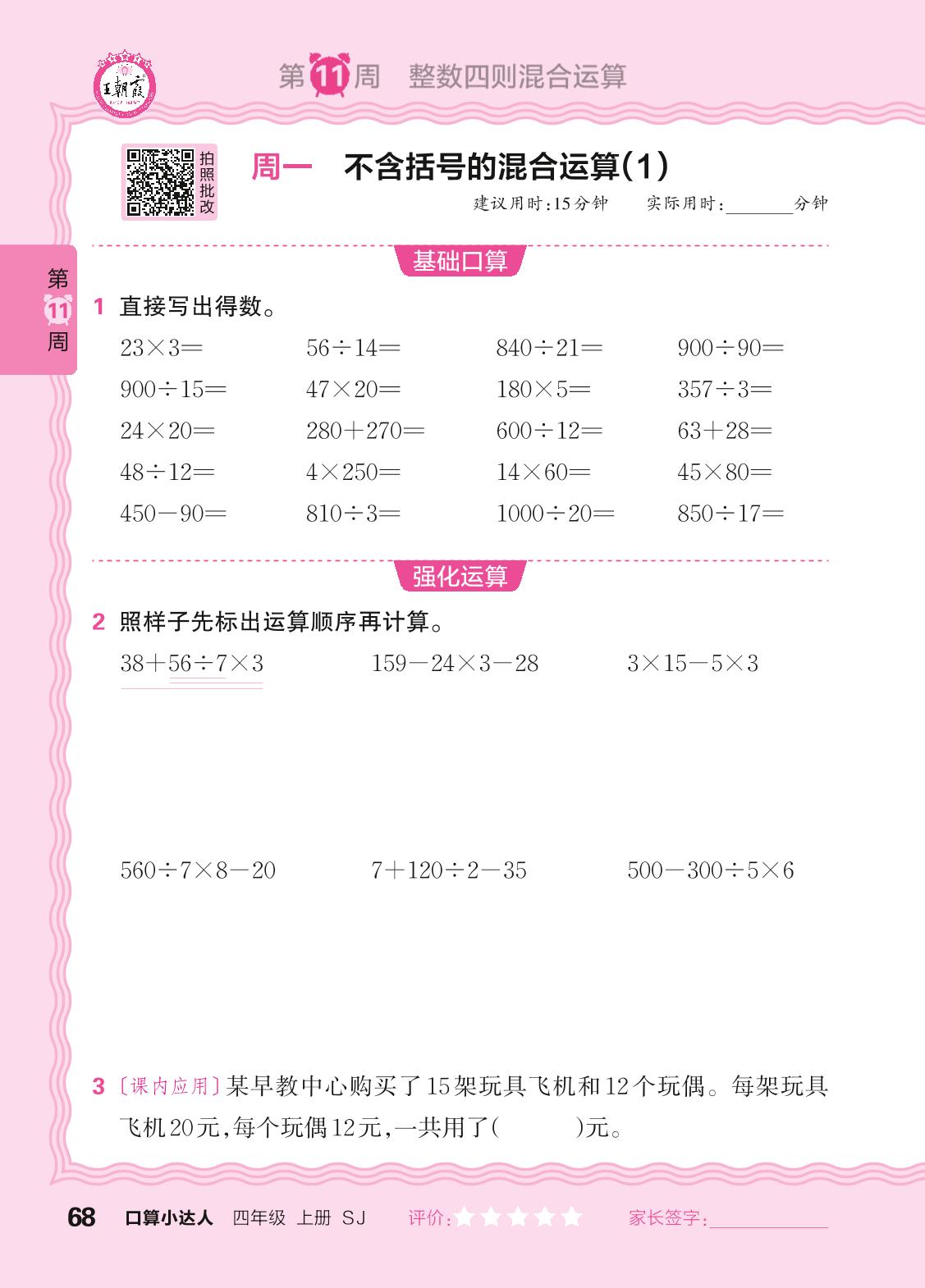 2024秋上册四年级数学苏教版 口算计算专练 第11周