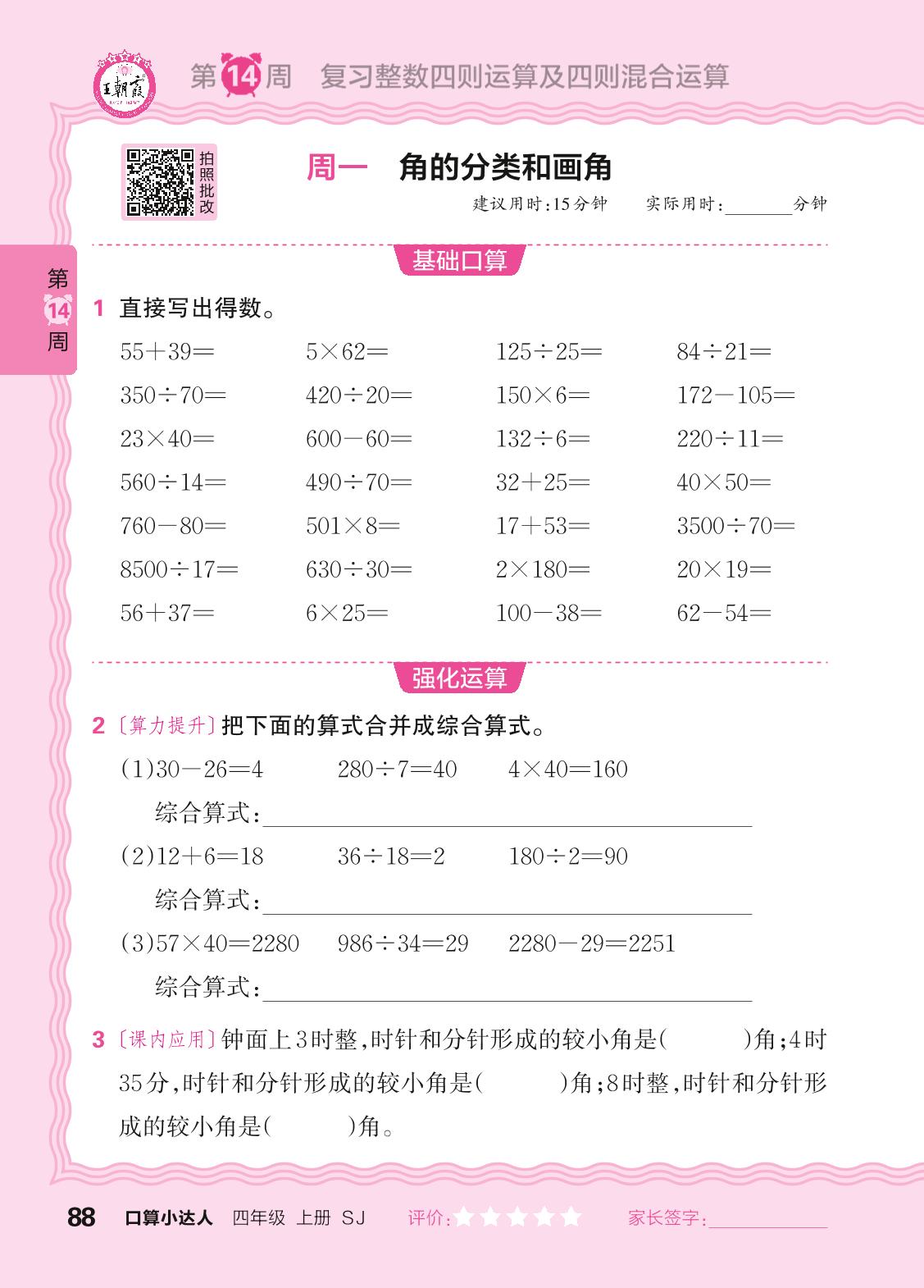 2024秋上册四年级数学苏教版 口算计算专练 第14周