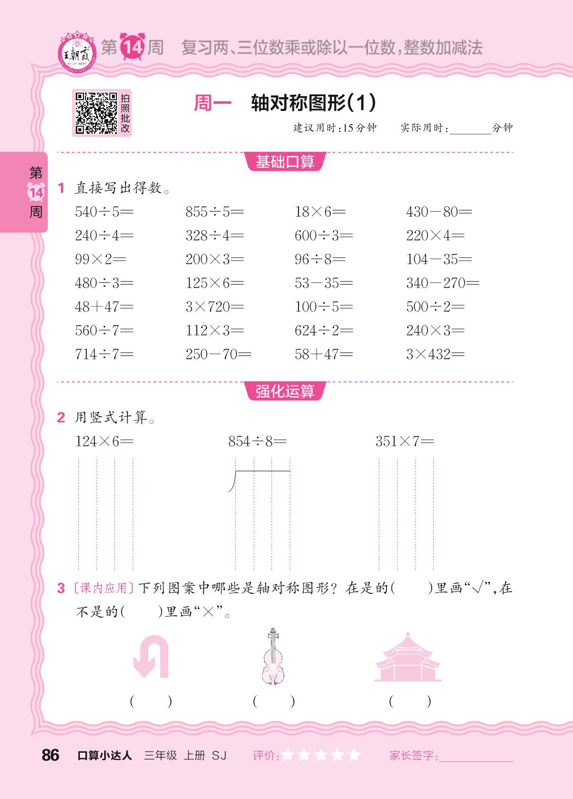 2024秋上册三年级数学苏教版 口算计算专练 第14周