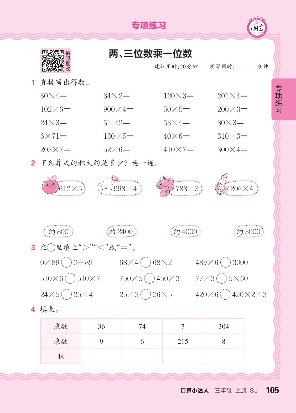 三年级数学苏教版上册专项卷