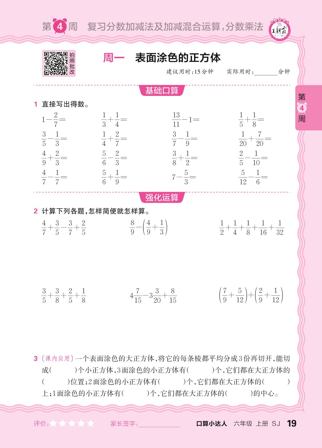 2024秋上册六年级数学苏教版 口算计算专练 第4周