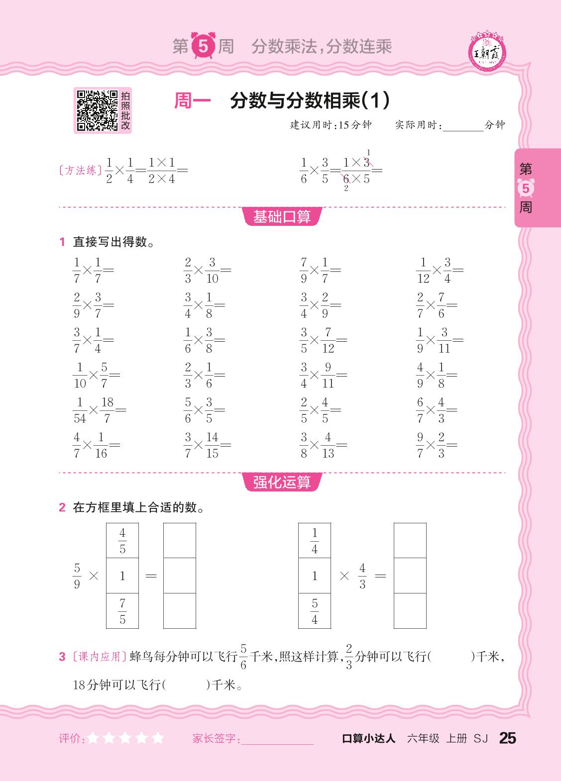 2024秋上册六年级数学苏教版 口算计算专练 第5周