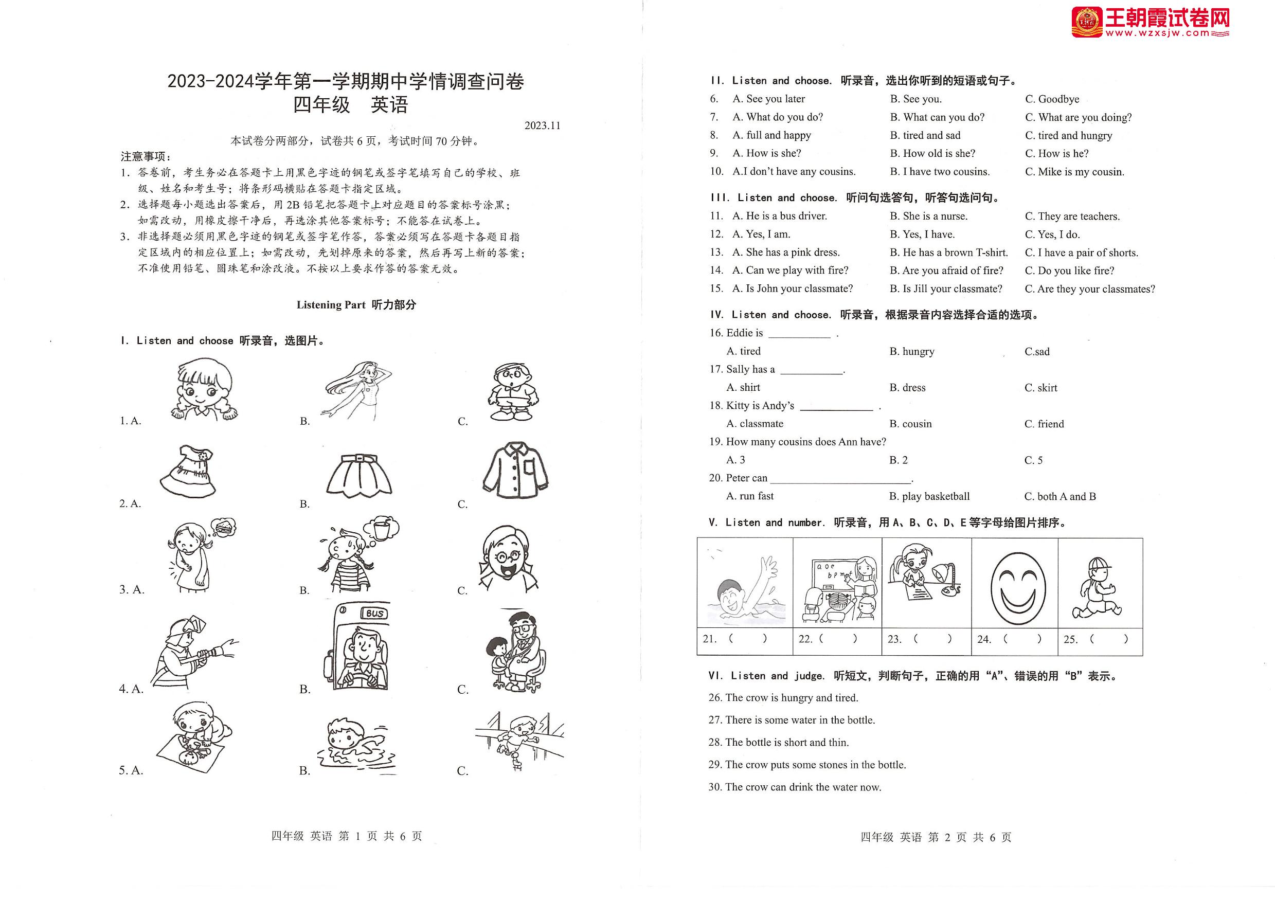 广东省深圳市龙华区2023-2024学年度第一学期期中学情调查试卷四年级英语(牛津深圳版)【无听力音频】