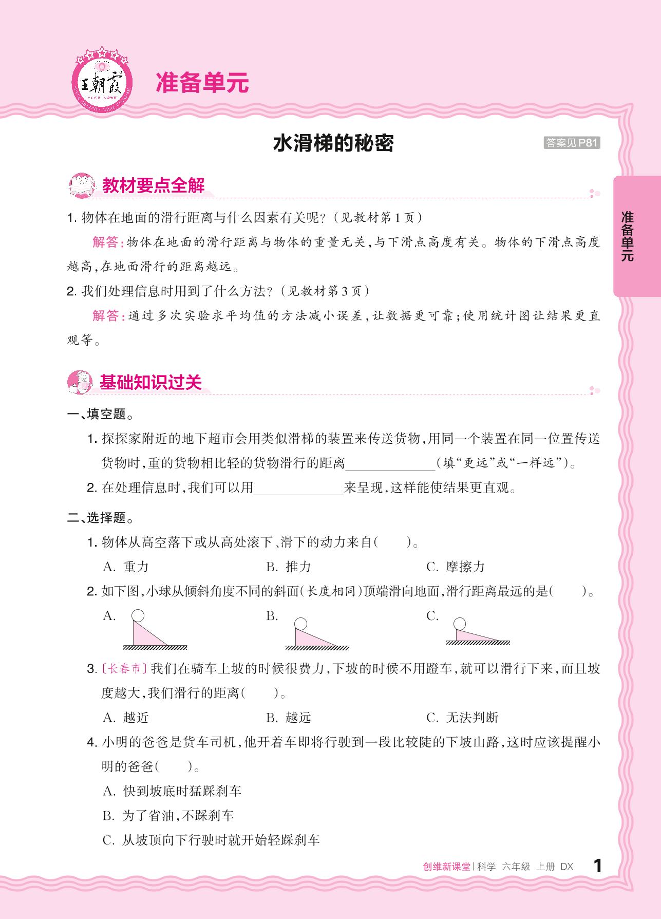 2024秋上册六年级科学大象版 准备单元——水滑梯的秘密