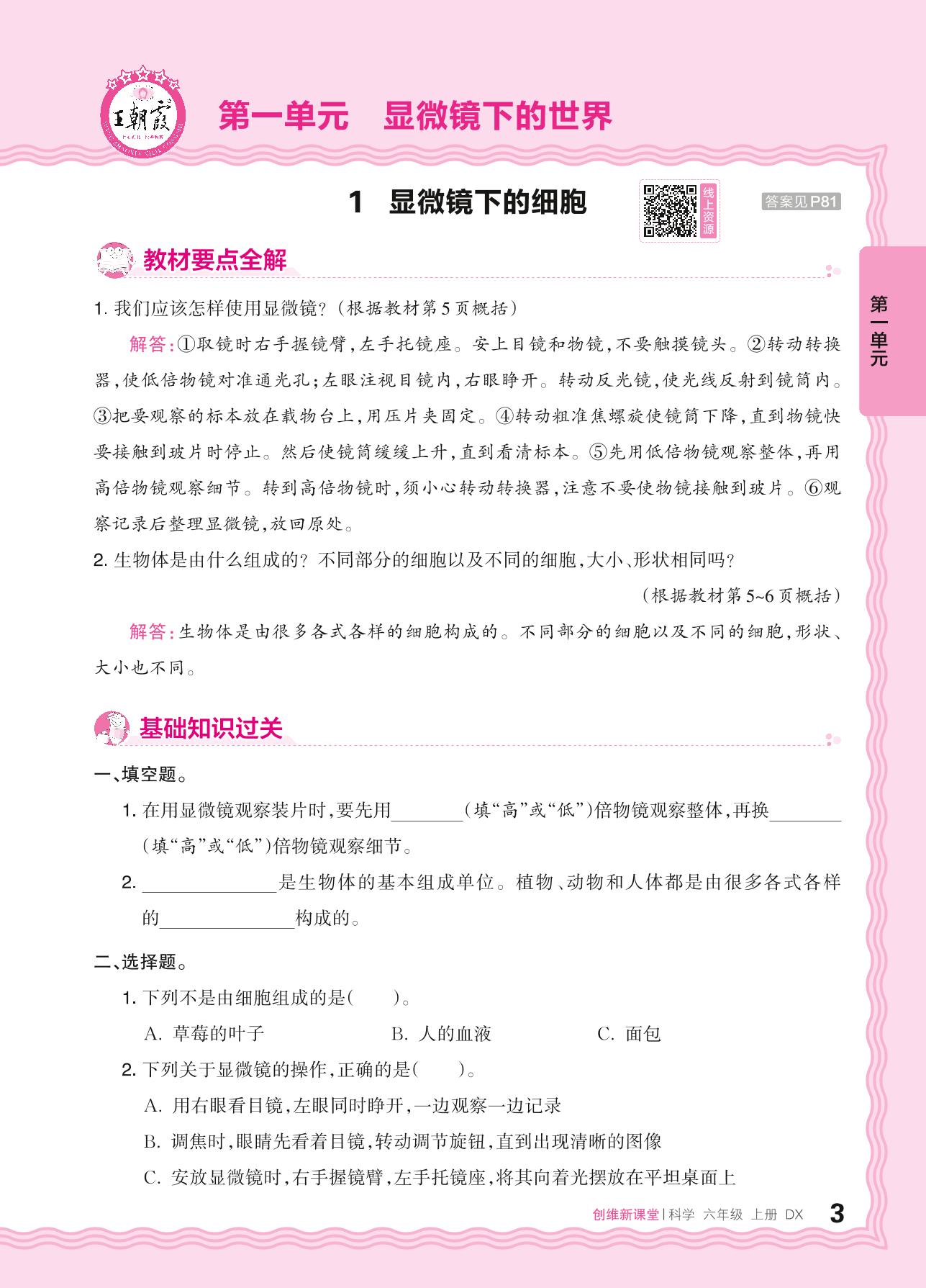 2024秋上册六年级科学大象版 第一单元 显微镜下的世界——1. 显微镜下的细胞