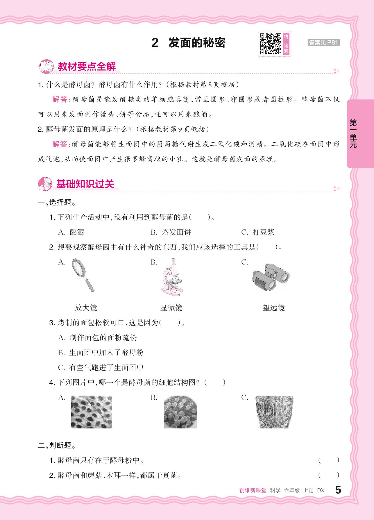 2024秋上册六年级科学大象版 第一单元 显微镜下的世界——2. 发面的秘密