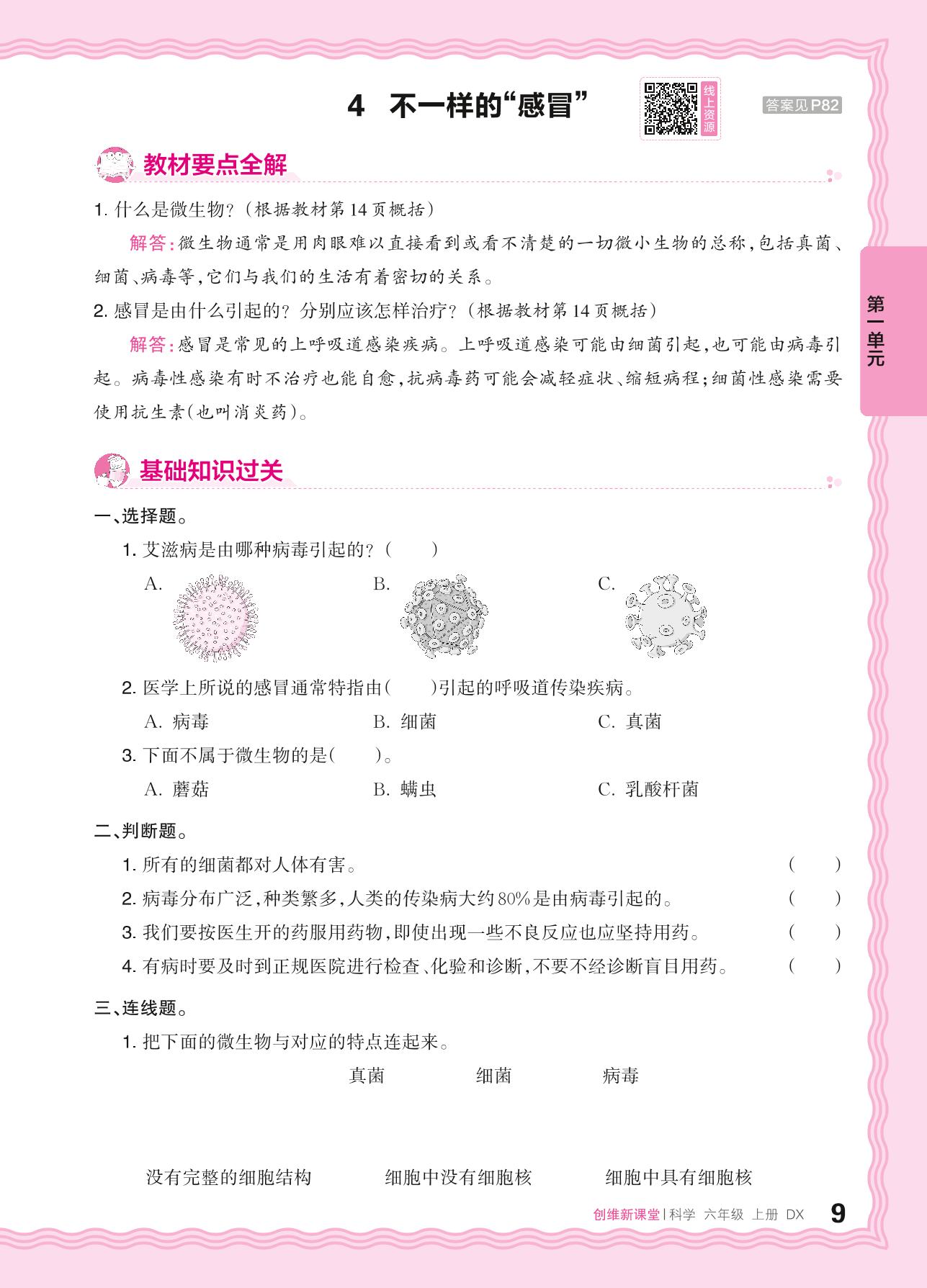 2024秋上册六年级科学大象版 第一单元 显微镜下的世界——4. 不一样的“感冒”