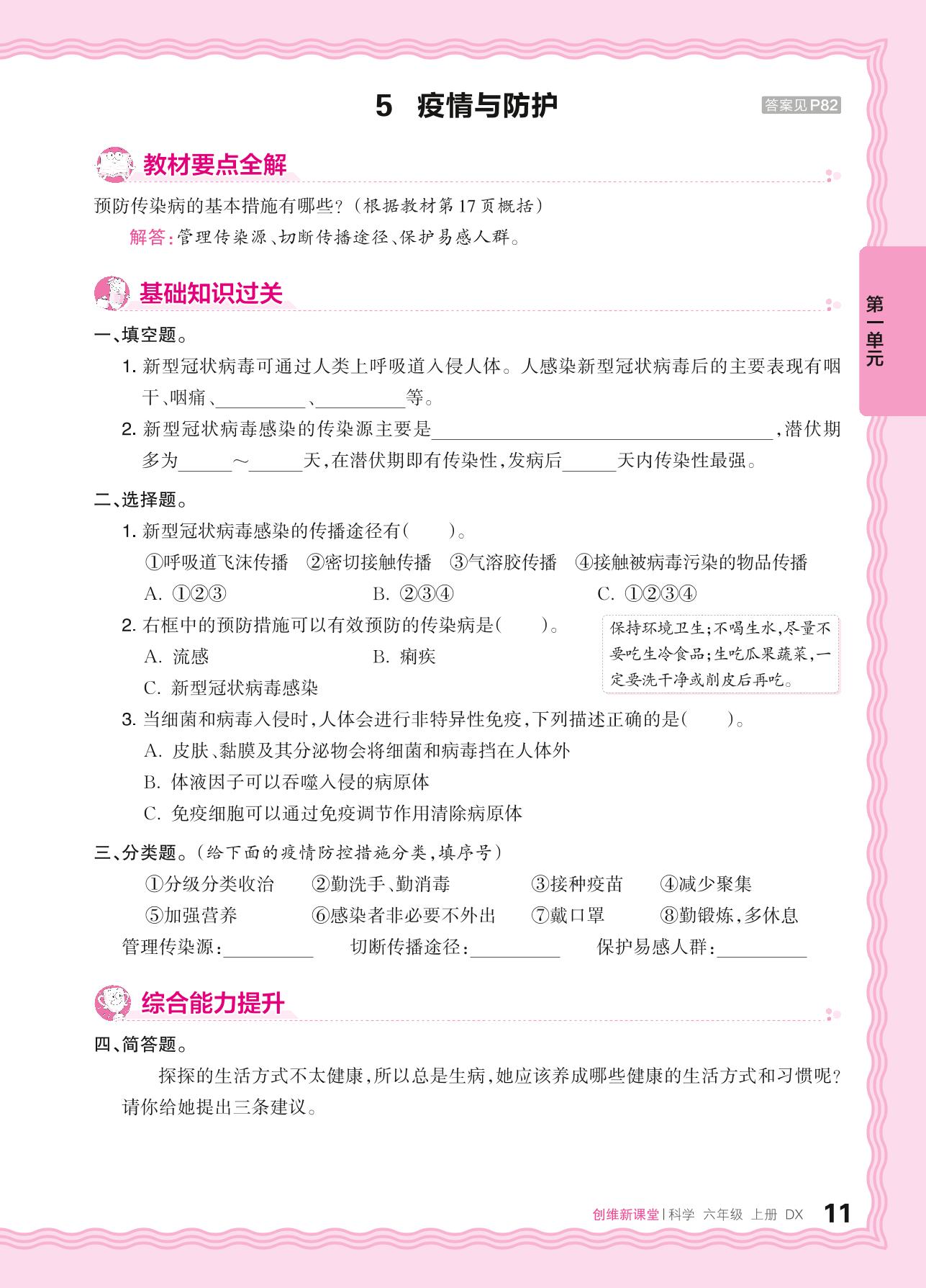 2024秋上册六年级科学大象版 第一单元 显微镜下的世界——5. 疫情与防护