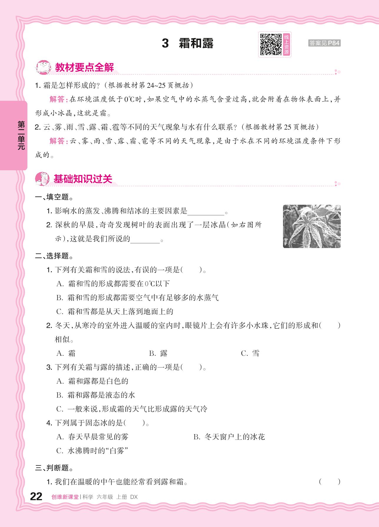 2024秋上册六年级科学大象版 第二单元 循环的水——3. 霜和露