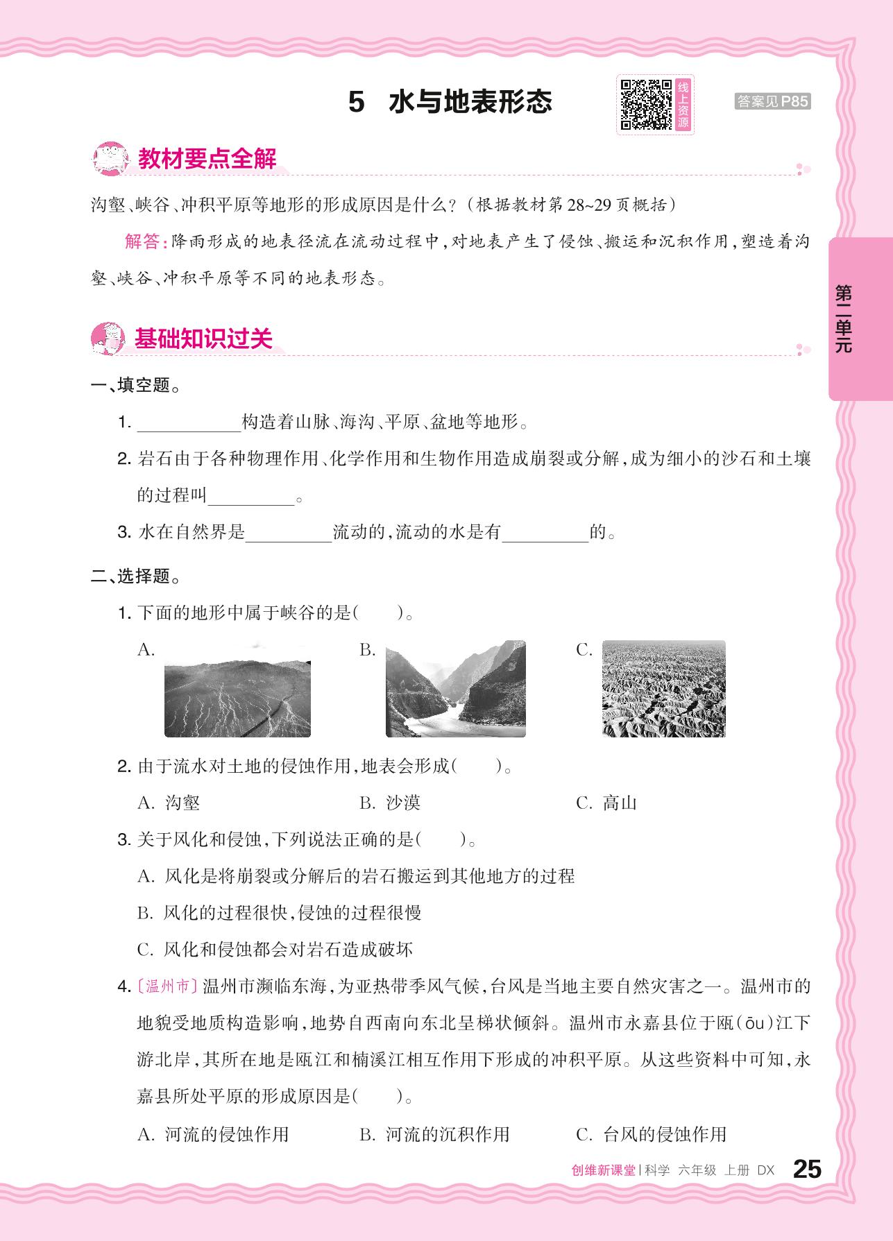 2024秋上册六年级科学大象版 第二单元 循环的水——5. 水与地表形态