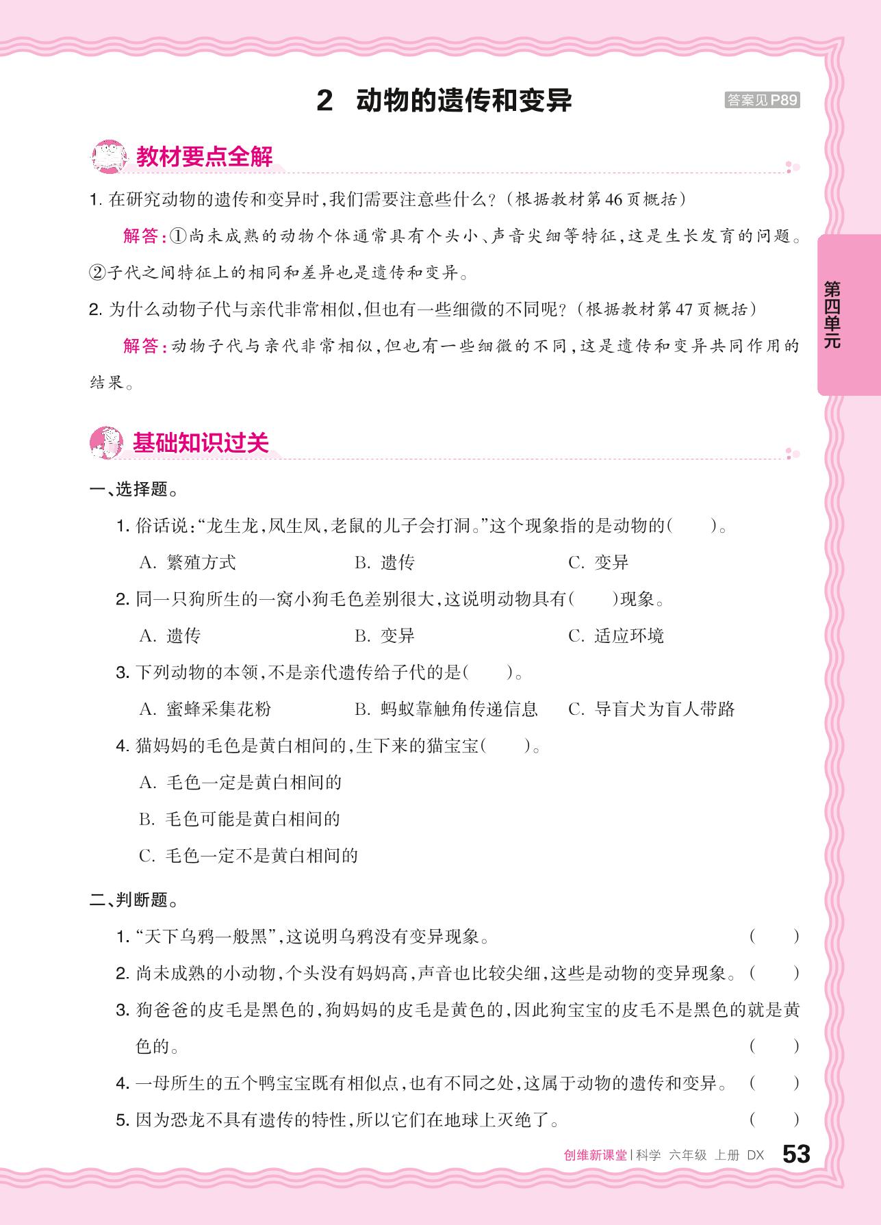 2024秋上册六年级科学大象版 第四单元 遗传和变异——2. 动物的遗传和变异