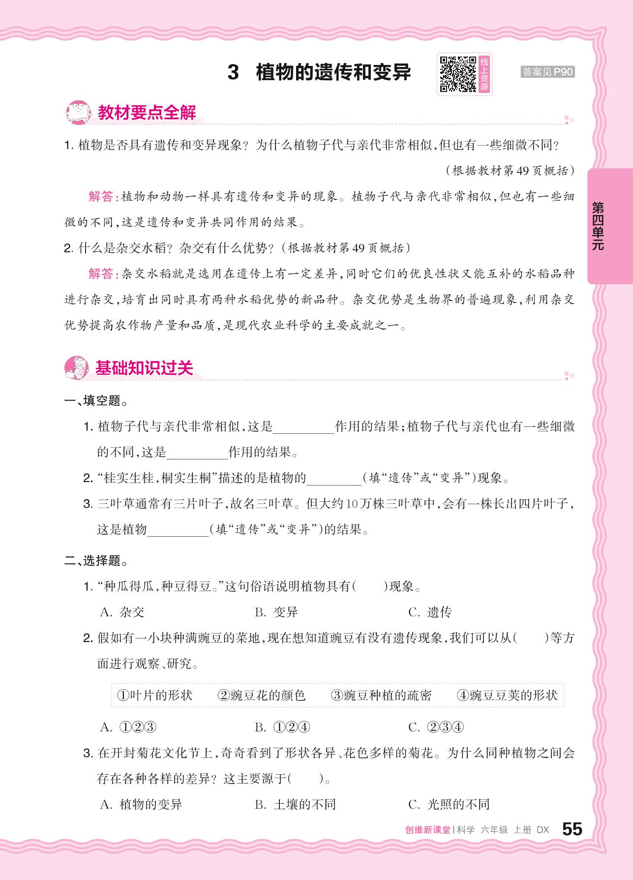 2024秋上册六年级科学大象版 第四单元 遗传和变异——3. 植物的遗传和变异