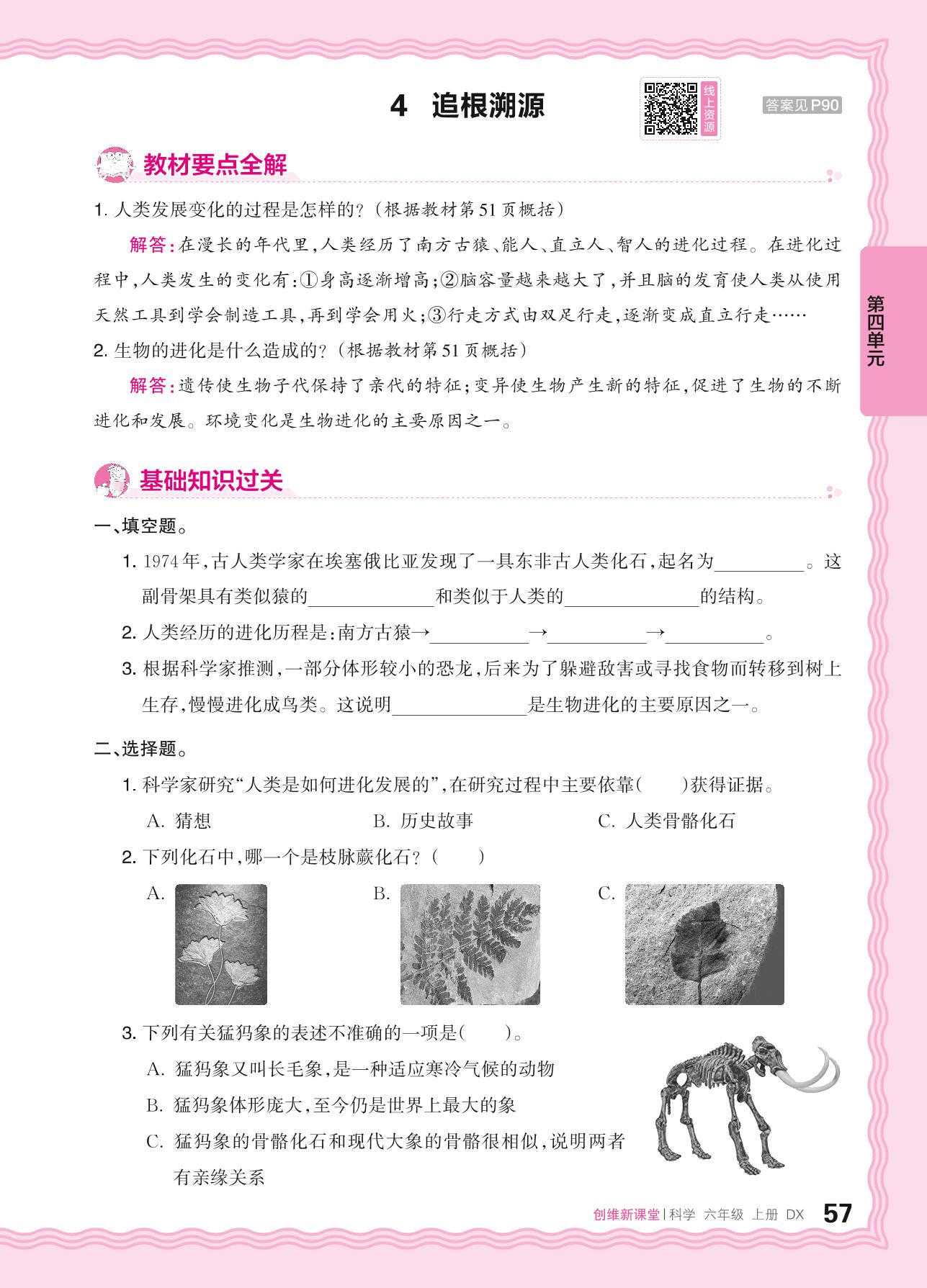 2024秋上册六年级科学大象版 第四单元 遗传和变异——4. 追根溯源