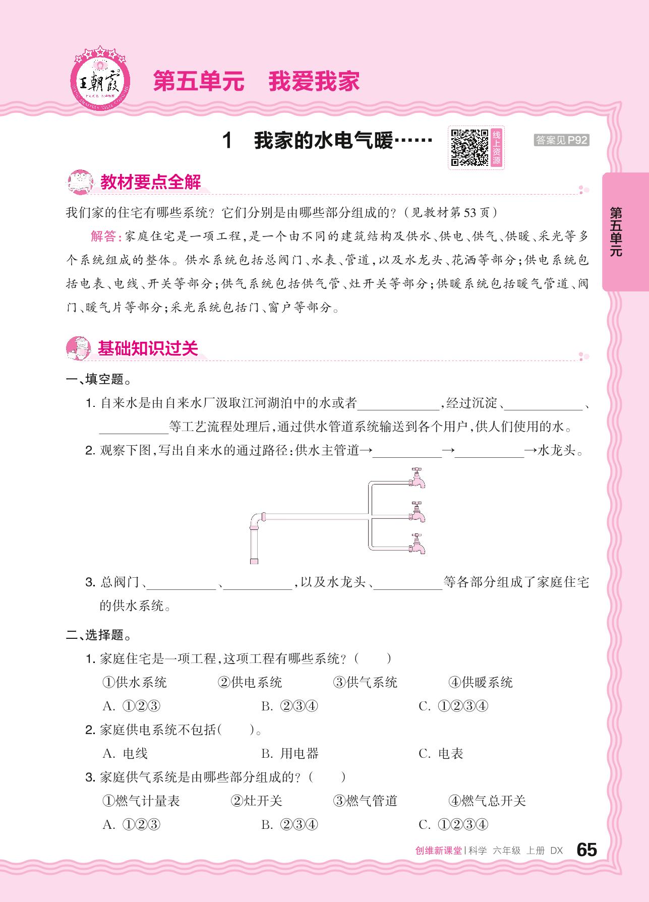 2024秋上册六年级科学大象版 第五单元 我爱我家——1. 我家的水电气暖