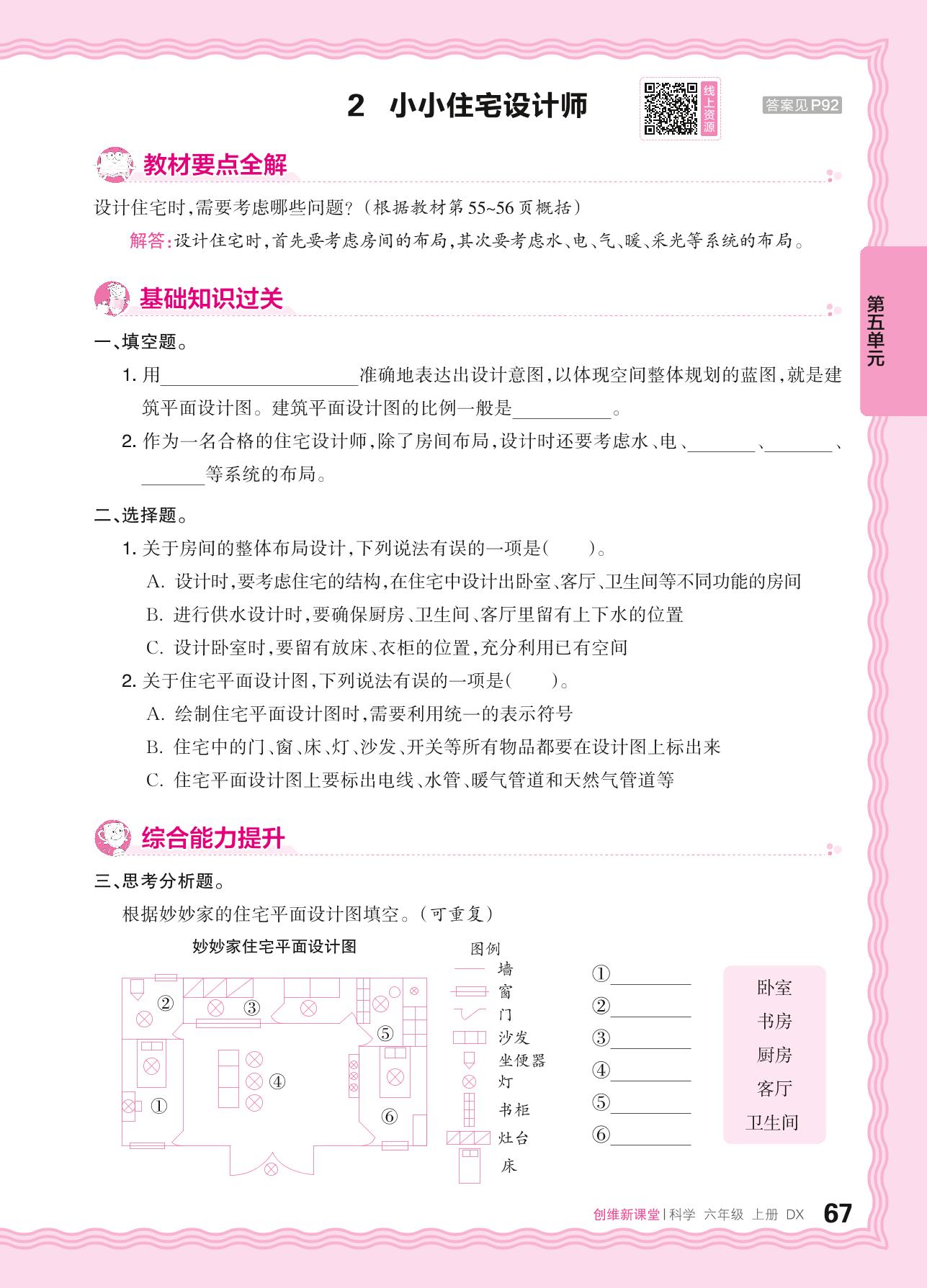 2024秋上册六年级科学大象版 第五单元 我爱我家——2. 小小住宅设计师