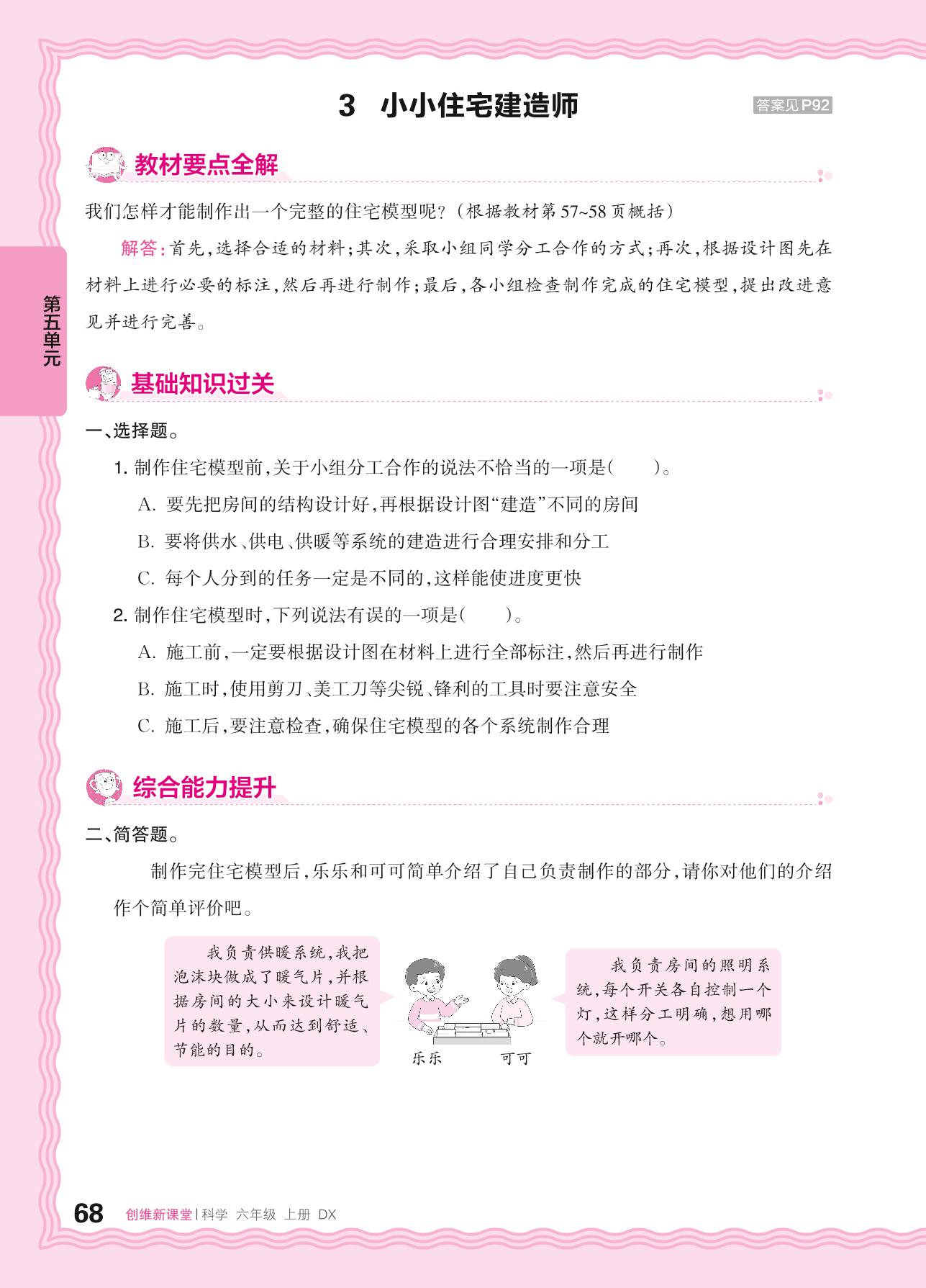 2024秋上册六年级科学大象版 第五单元 我爱我家——3. 小小住宅建造师
