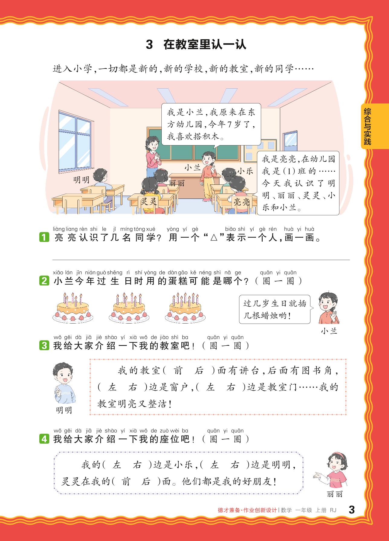 2024秋上册一年级数学人教版 数学游戏——3. 在教室里认一认