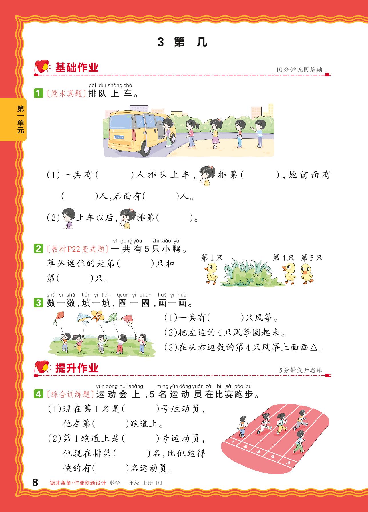 2024秋上册一年级数学人教版 第一单元 5以内数的认识和加、减法——3. 第几