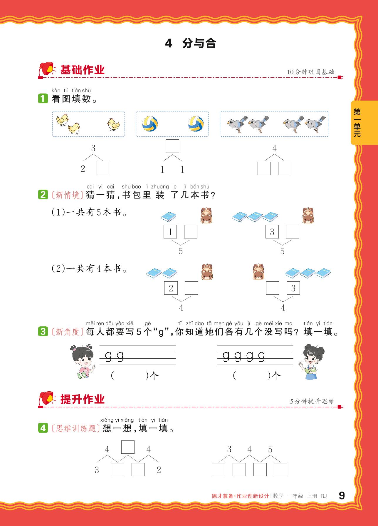 2024秋上册一年级数学人教版 第一单元 5以内数的认识和加、减法——4. 分与合