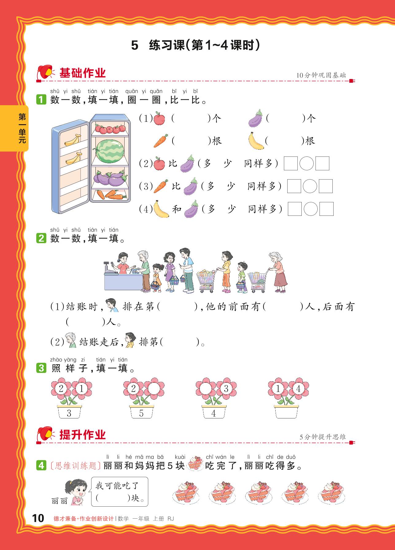 2024秋上册一年级数学人教版 第一单元 5以内数的认识和加、减法——5. 1~5的认识练习课