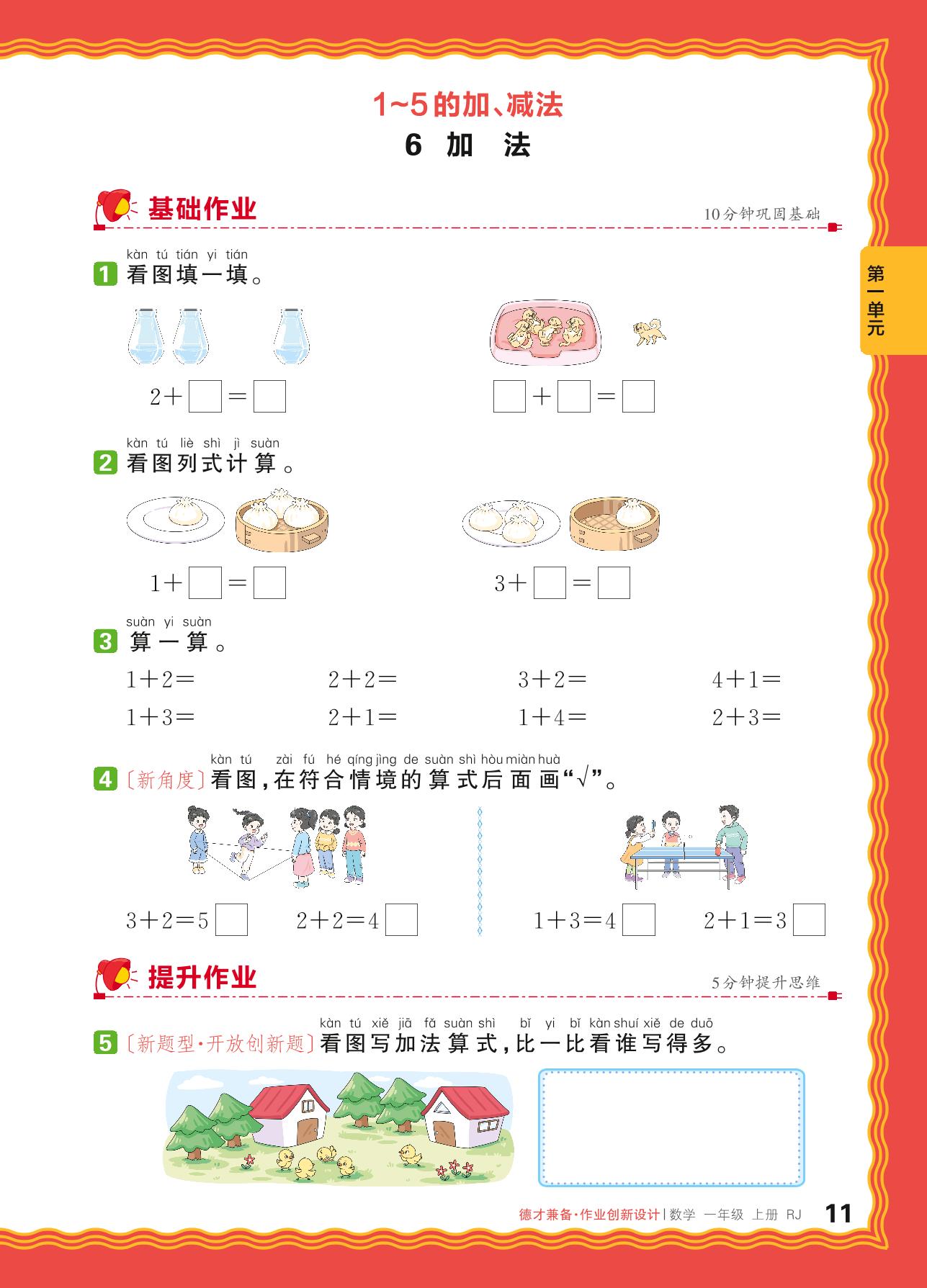 2024秋上册一年级数学人教版 第一单元 5以内数的认识和加、减法——6. 加法