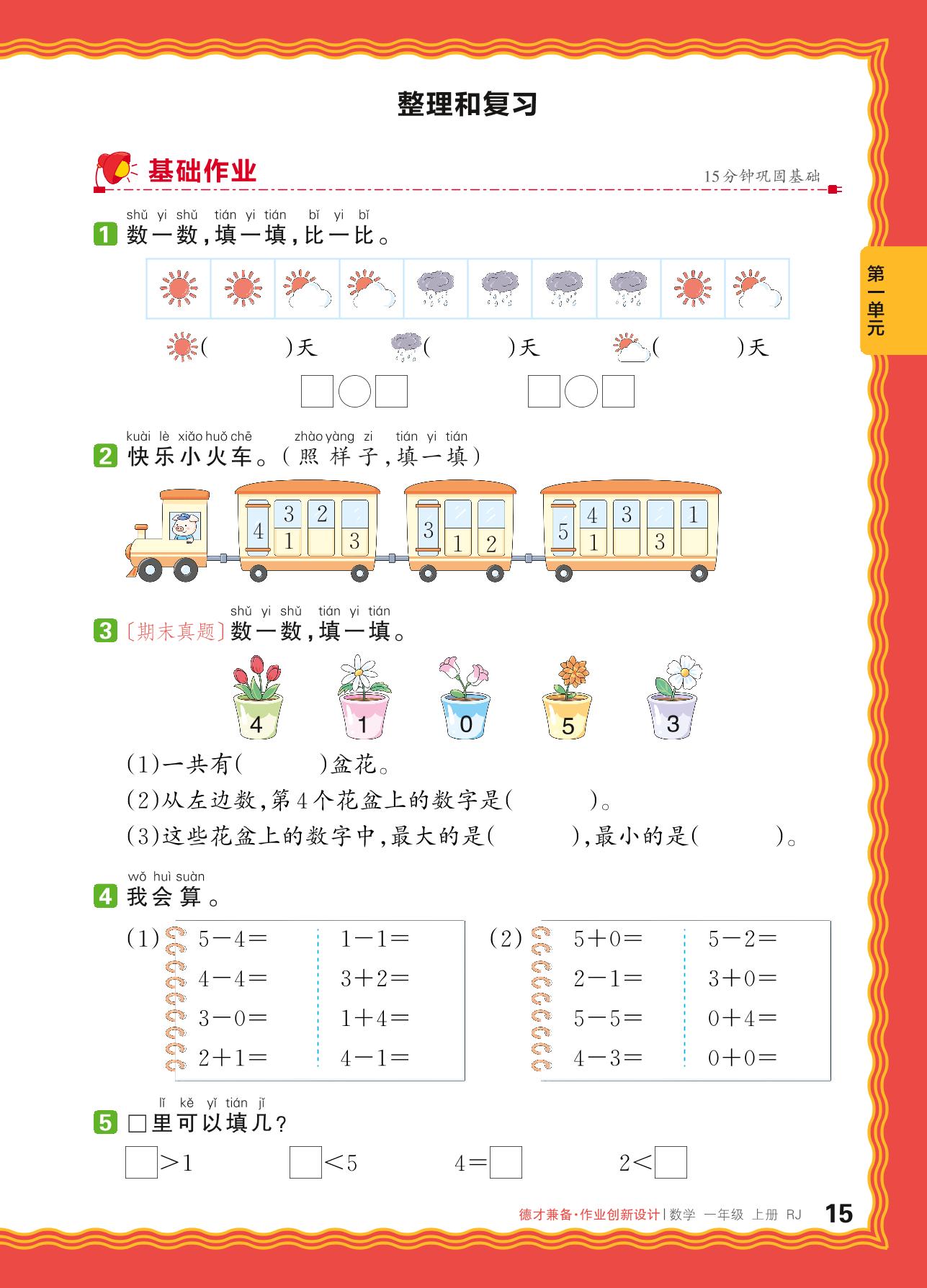 2024秋上册一年级数学人教版 第一单元 5以内数的认识和加、减法——整理和复习