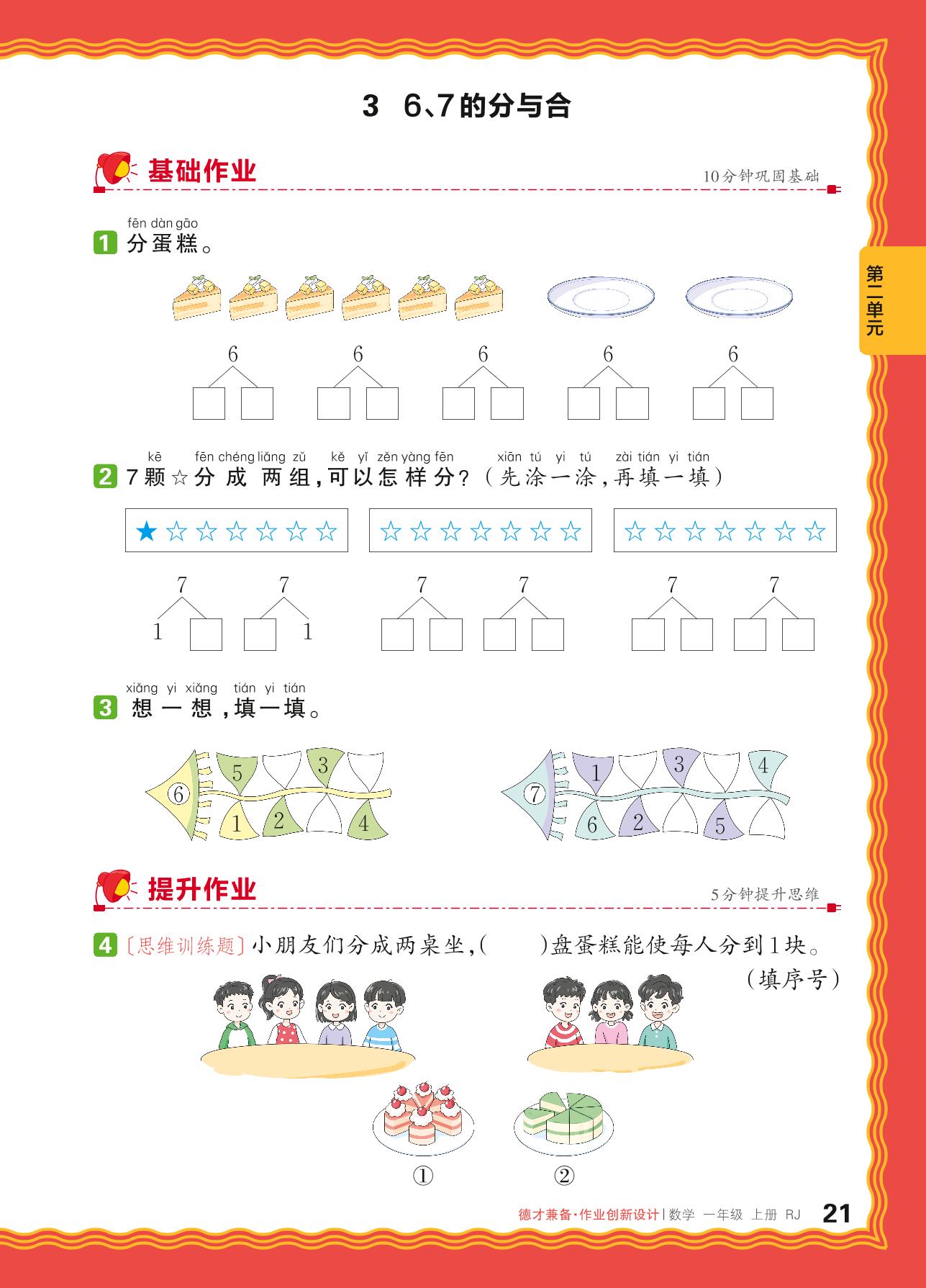 2024秋上册一年级数学人教版 第二单元 6~10的认识和加、减法——3. 6、7的分与合