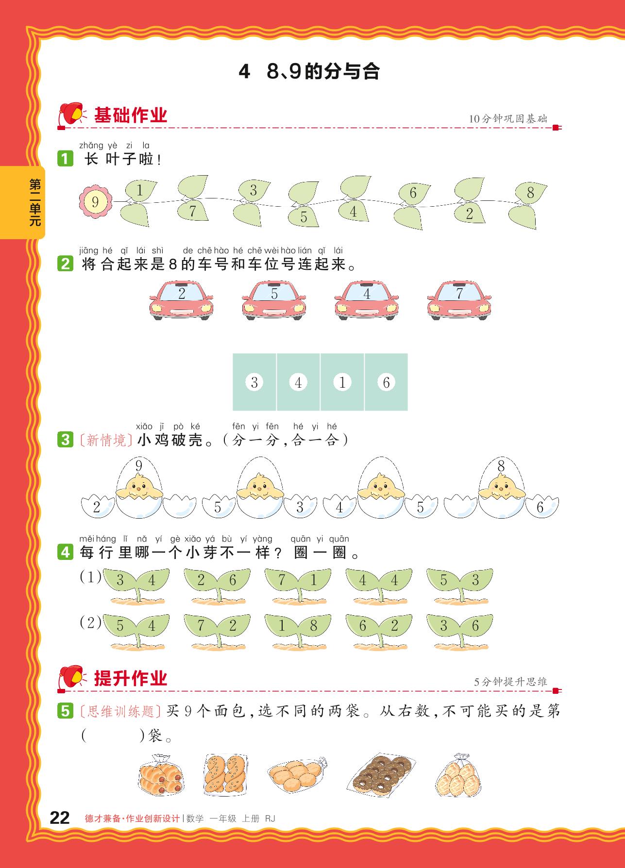 2024秋上册一年级数学人教版 第二单元 6~10的认识和加、减法——4. 8、9的分与合