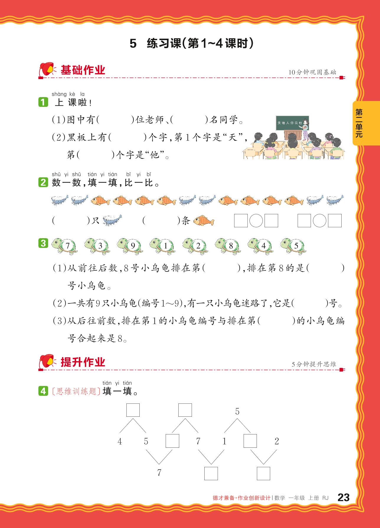 2024秋上册一年级数学人教版 第二单元 6~10的认识和加、减法——5. 6~9的认识练习课