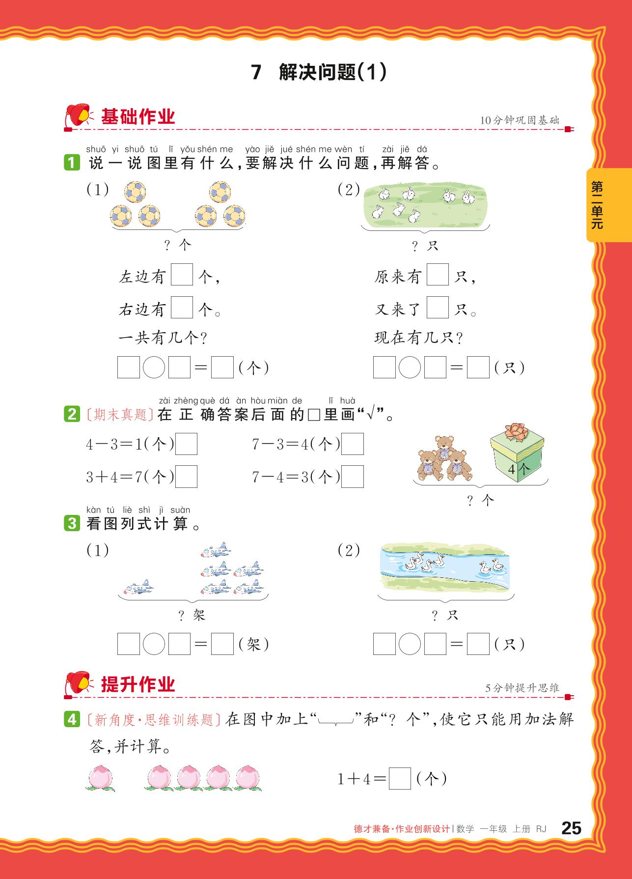 2024秋上册一年级数学人教版 第二单元 6~10的认识和加、减法——7. 解决问题(1)