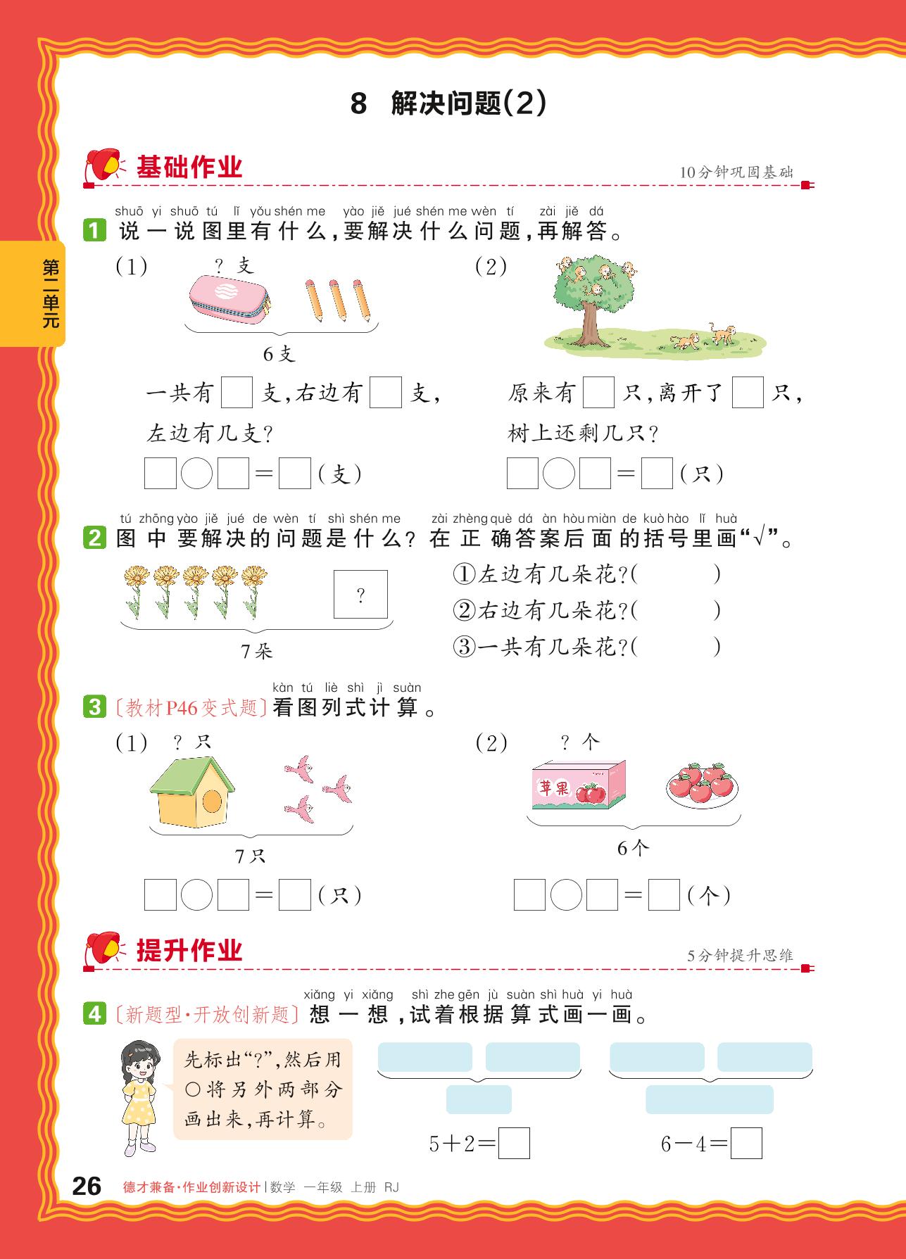 2024秋上册一年级数学人教版 第二单元 6~10的认识和加、减法——8. 解决问题(2)