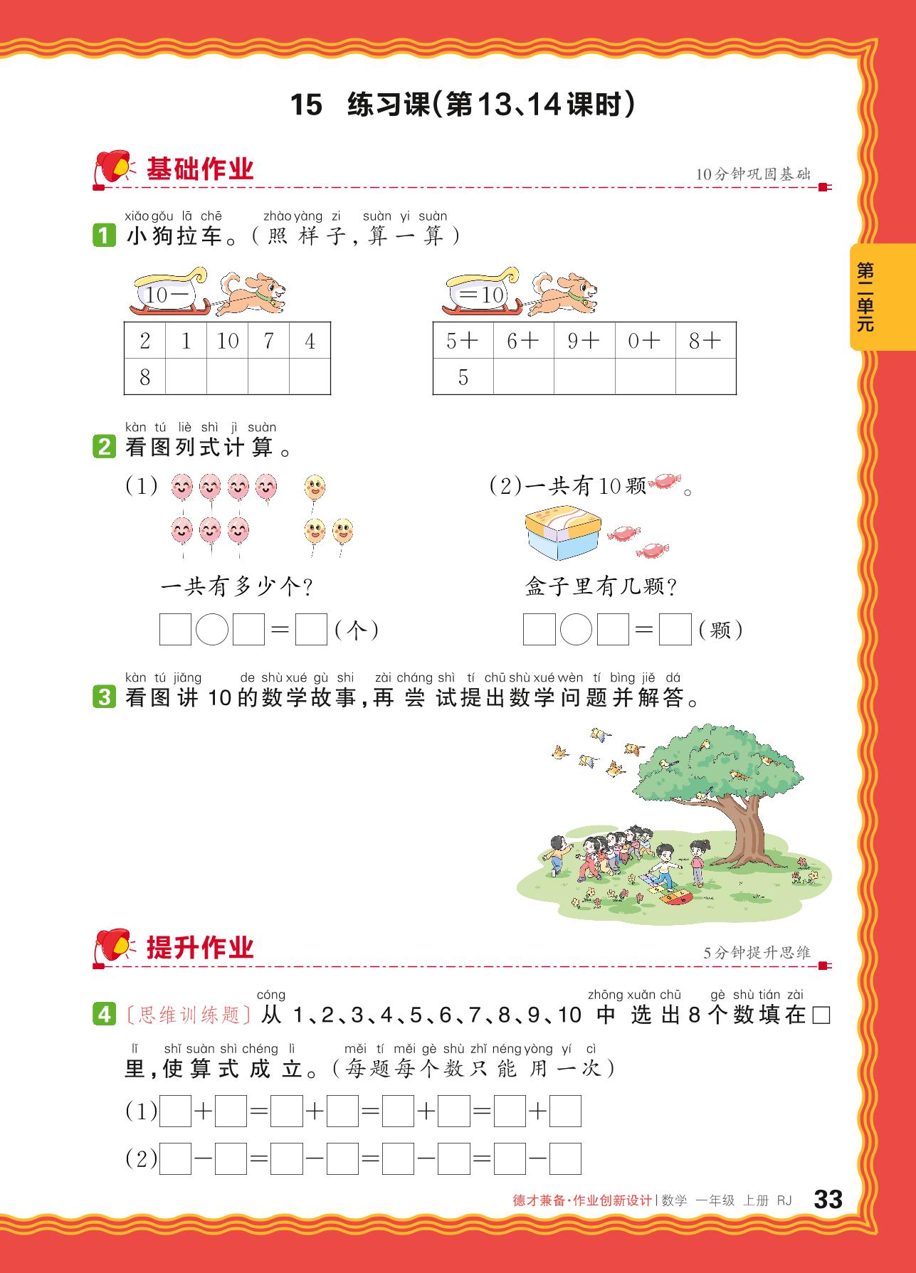 2024秋上册一年级数学人教版 第二单元 6~10的认识和加、减法——15. 10的认识和加、减法练习课(1)