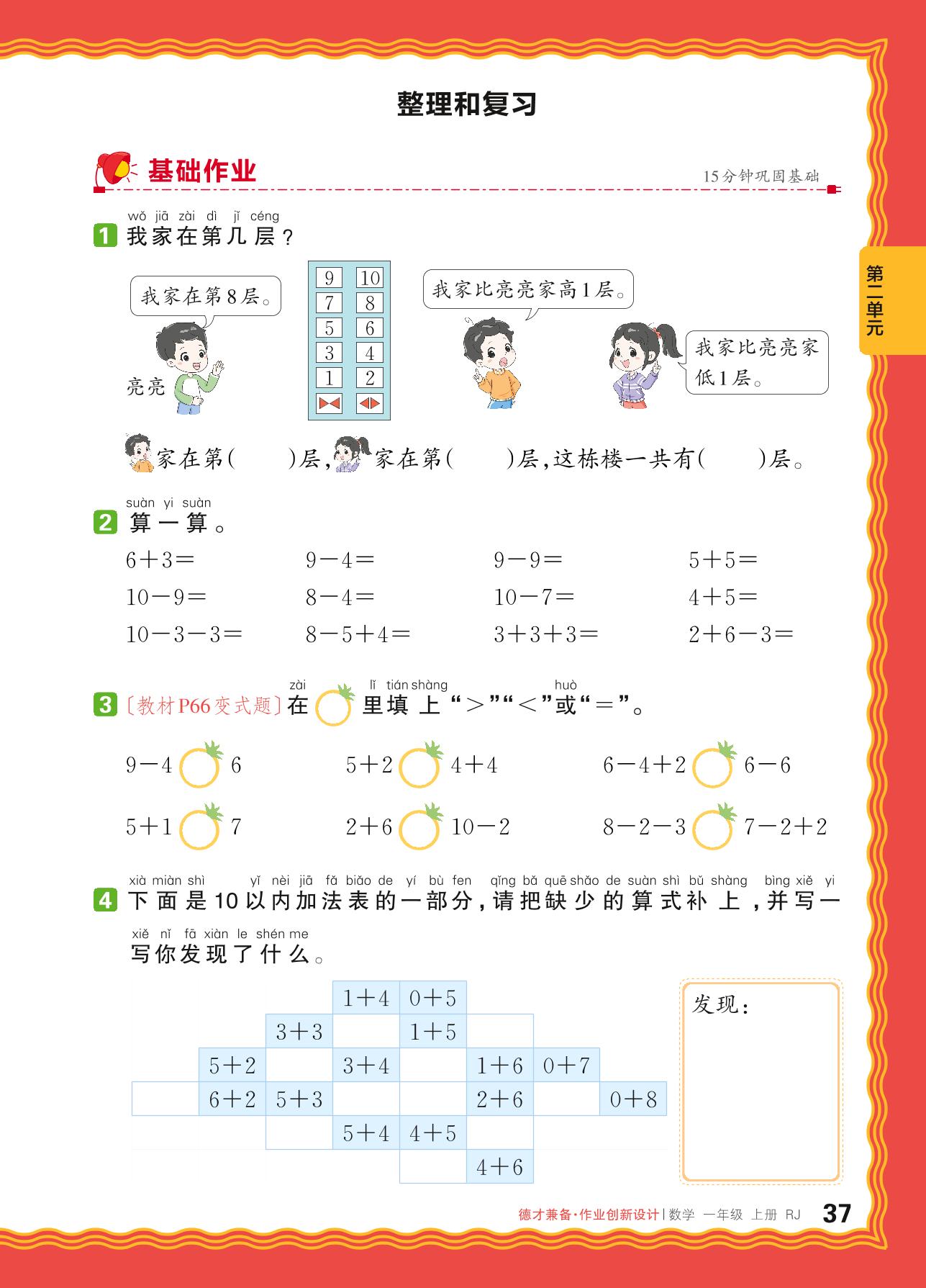 2024秋上册一年级数学人教版 第二单元 6~10的认识和加、减法——整理和复习