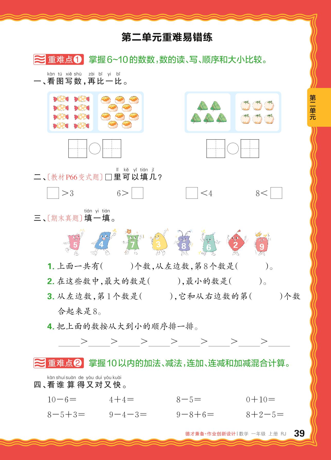 2024秋上册一年级数学人教版 第二单元重难易错练