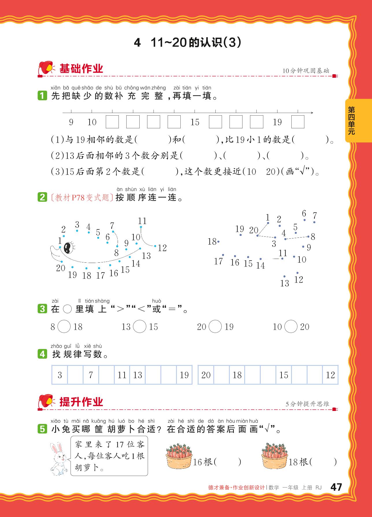 2024秋上册一年级数学人教版 第四单元 11~20的认识——4. 11~20的认识(3)